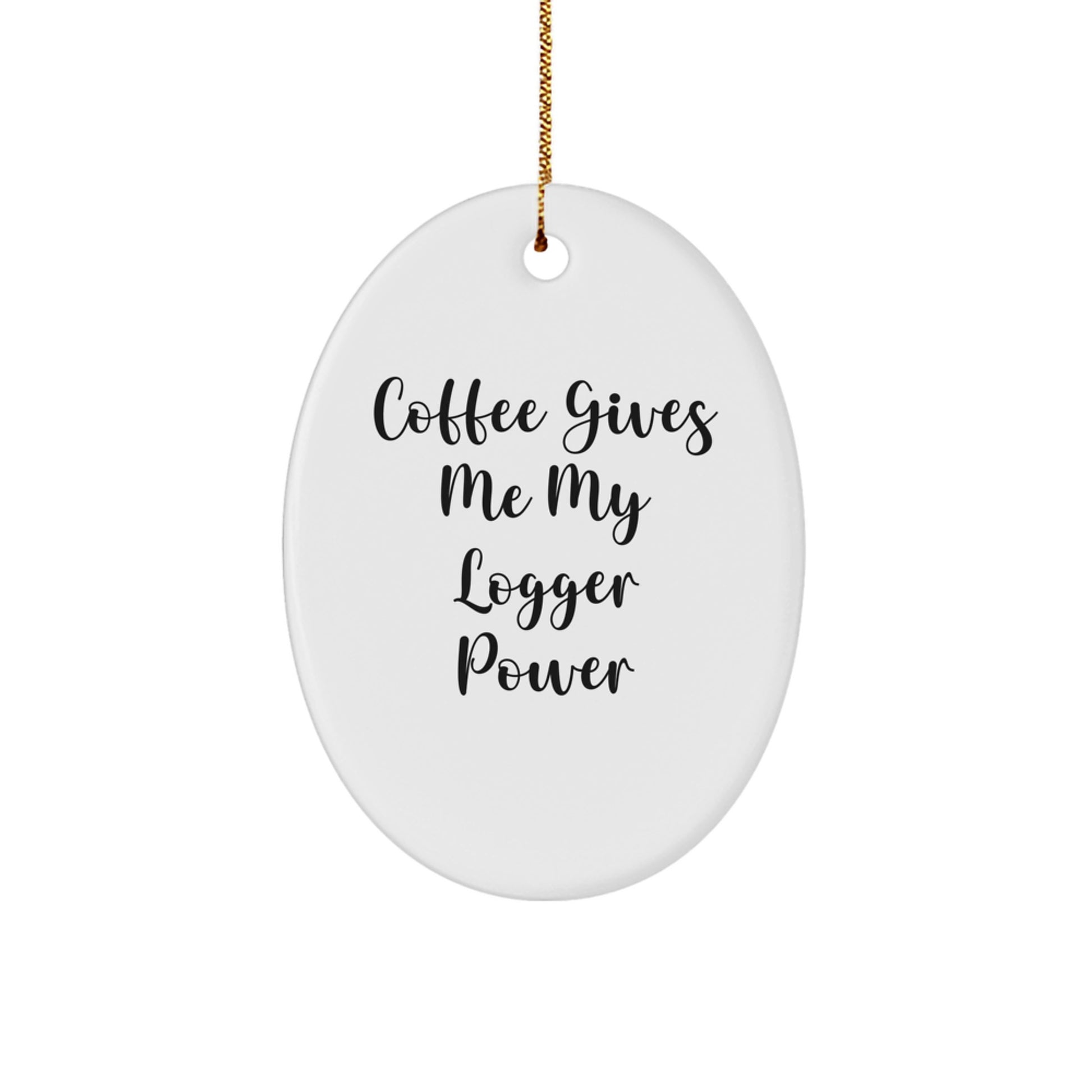 Are you a Logger enthusiast looking for a unique gift for your loved ones? Look no further! This funny oval ornament is perfect for Logger fans, with a quote that says 'Coffee Gives Me My Logger Power'. It's a thoughtful gift for anyone who loves their coffee and logger. The ornament is made of sturdy MDF with a high-gloss plastic finish, ensuring it will last for years to come. The vibrant colors and festive gold cord make it easy to hang and decorate for Christmas. This gift is perfect for men, women, and friends who love logger. Whether you're a logger yourself or know someone who is, this gift is sure to bring a smile to their face. So why wait? Get your funny logger gifts today and make this Christmas one to remember!