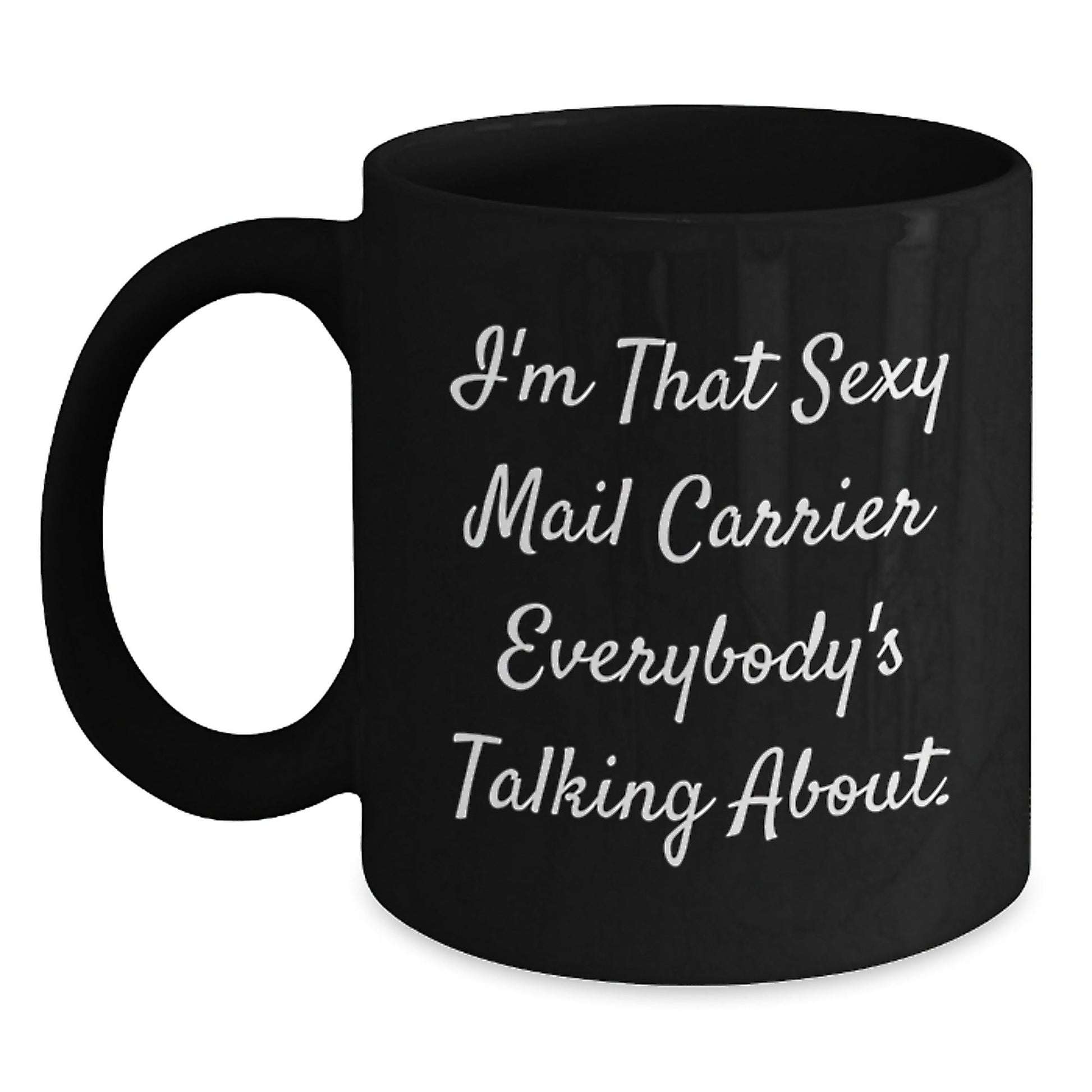 - Make a statement with this hilarious 'I'm That Sexy Mail Carrier Everybody's Talking About.' Black Coffee Mug, perfect for any mail carrier who loves to have a good sense of humor.