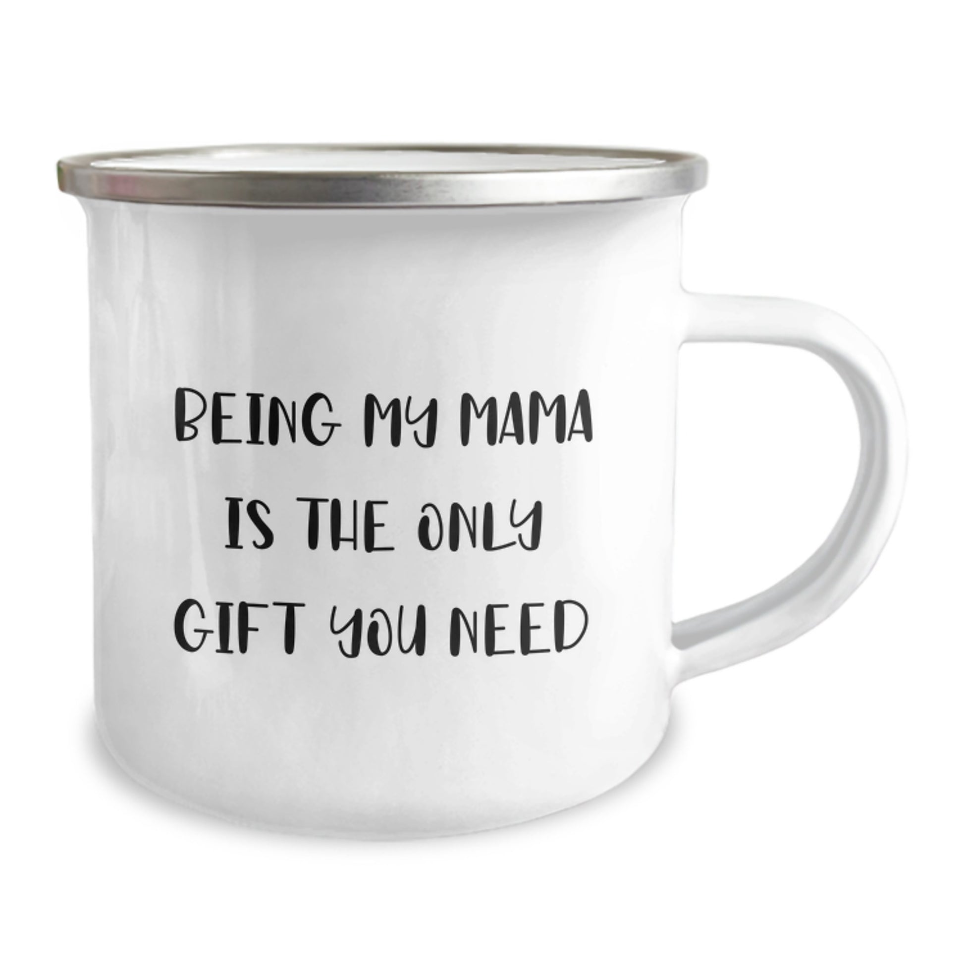 Are you struggling to find the ideal gift for your amazing Mama? Look no further! A unique and thoughtful gift, this 'Being My Mama Is The Only Gift You Need' Camping Mug is sure to bring a smile to her face on her special day. With its 12 oz capacity and stainless steel with enamel finish, this mug is perfect for any camping or outdoor adventure.