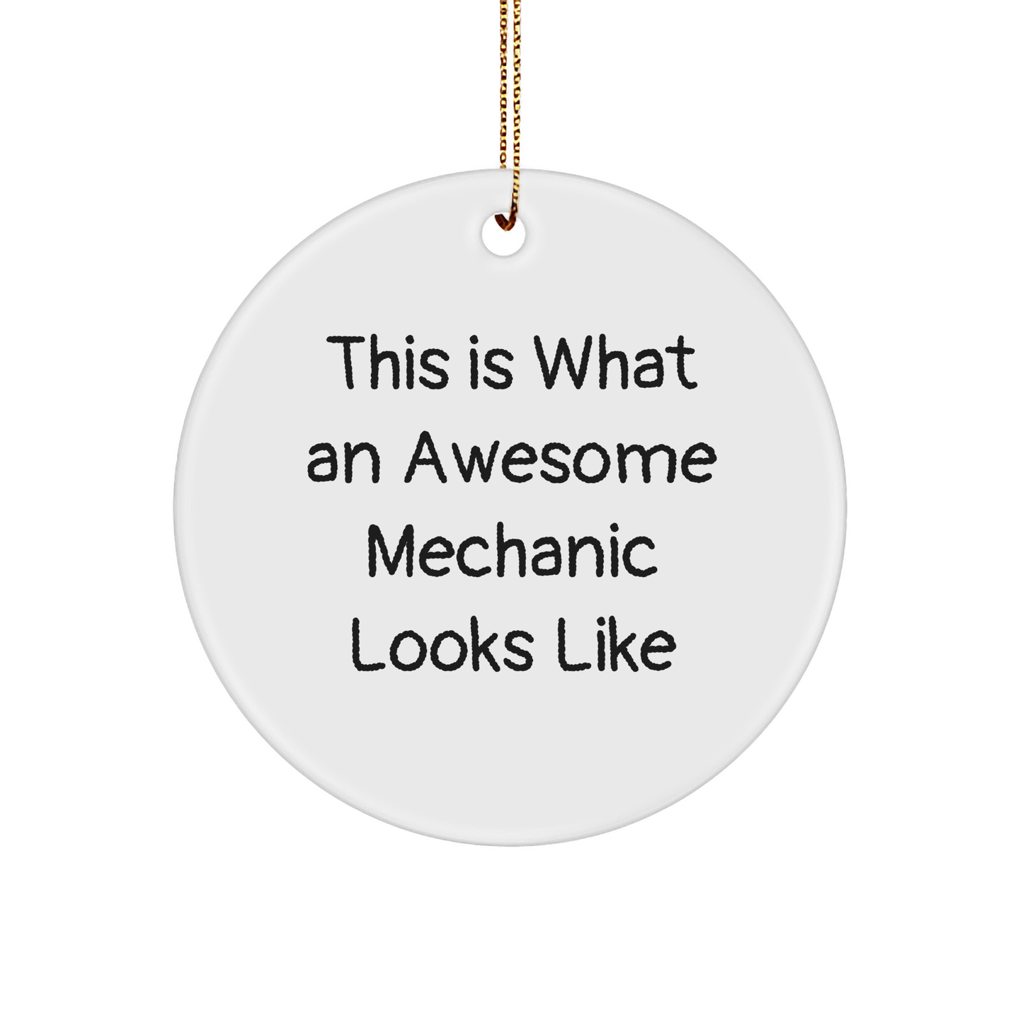 - This Mechanic Circle Ornament is a unique and funny gift for any Mechanic enthusiast, featuring the quote 'This Is What An Awesome Mechanic Looks Like' in bright, vivid colors.