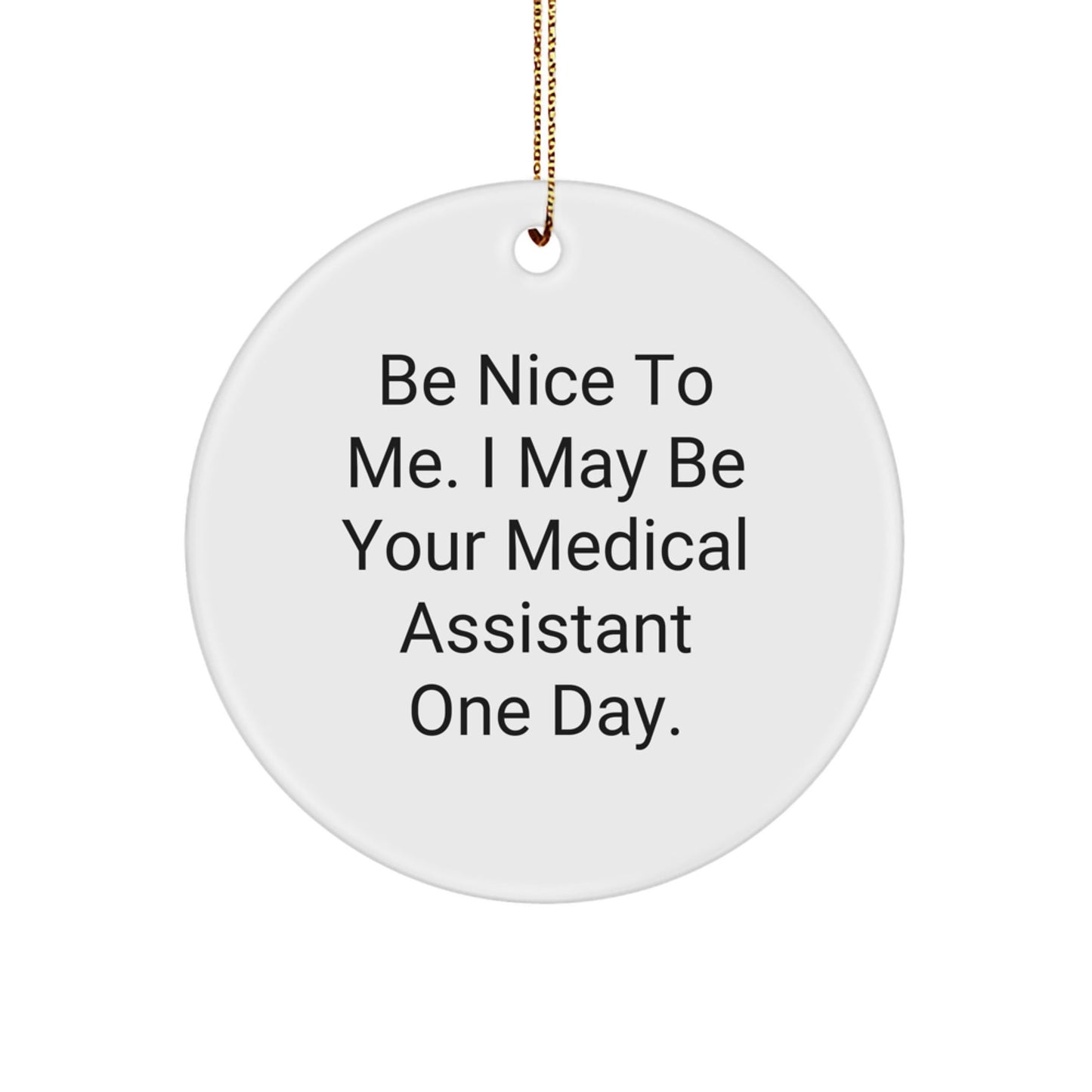 - Don't miss out and get ready to spread some holiday cheer with our Be Nice To Me. I May Be Your Medical Assistant One Day. Circle Ornament - a great gift for Medical Assistants and perfect for decorating your home or office!