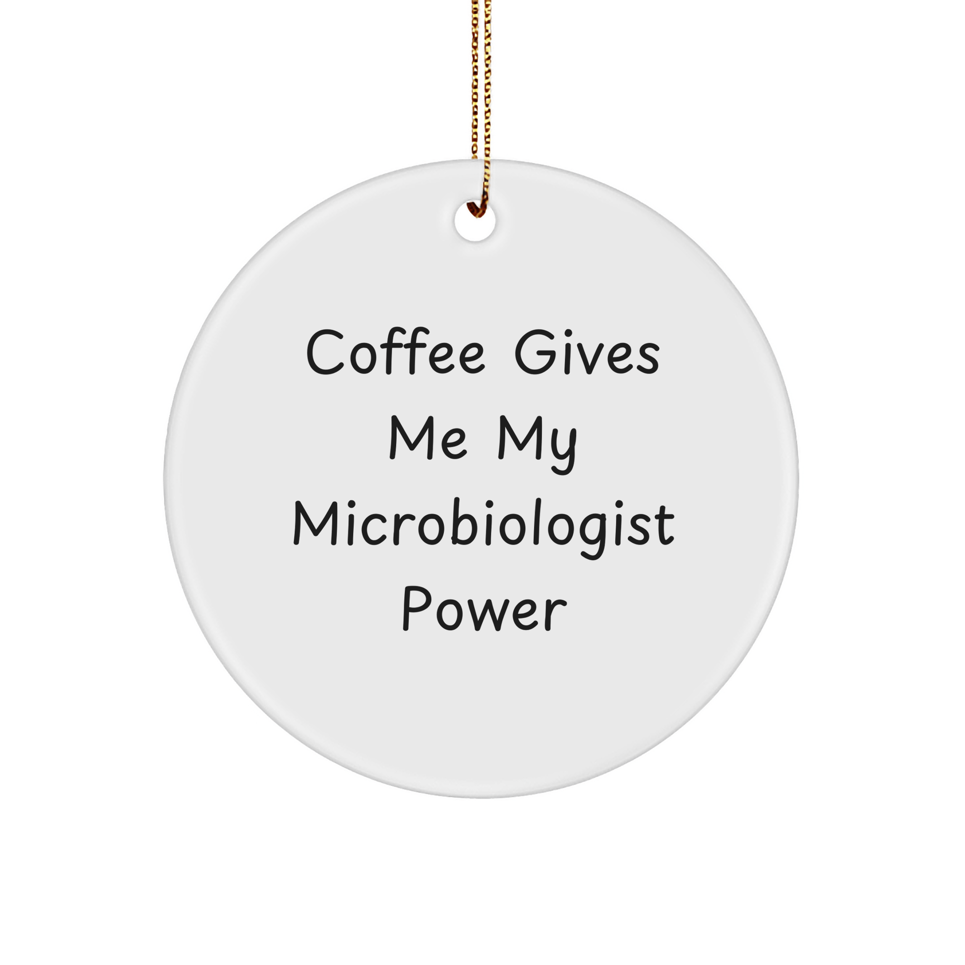 - Give the gift of joy and laughter to your favorite microbiologist with this 'Coffee Gives Me My Microbiologist Power' Circle Ornament. It's a unique and thoughtful present that they'll love and remember.