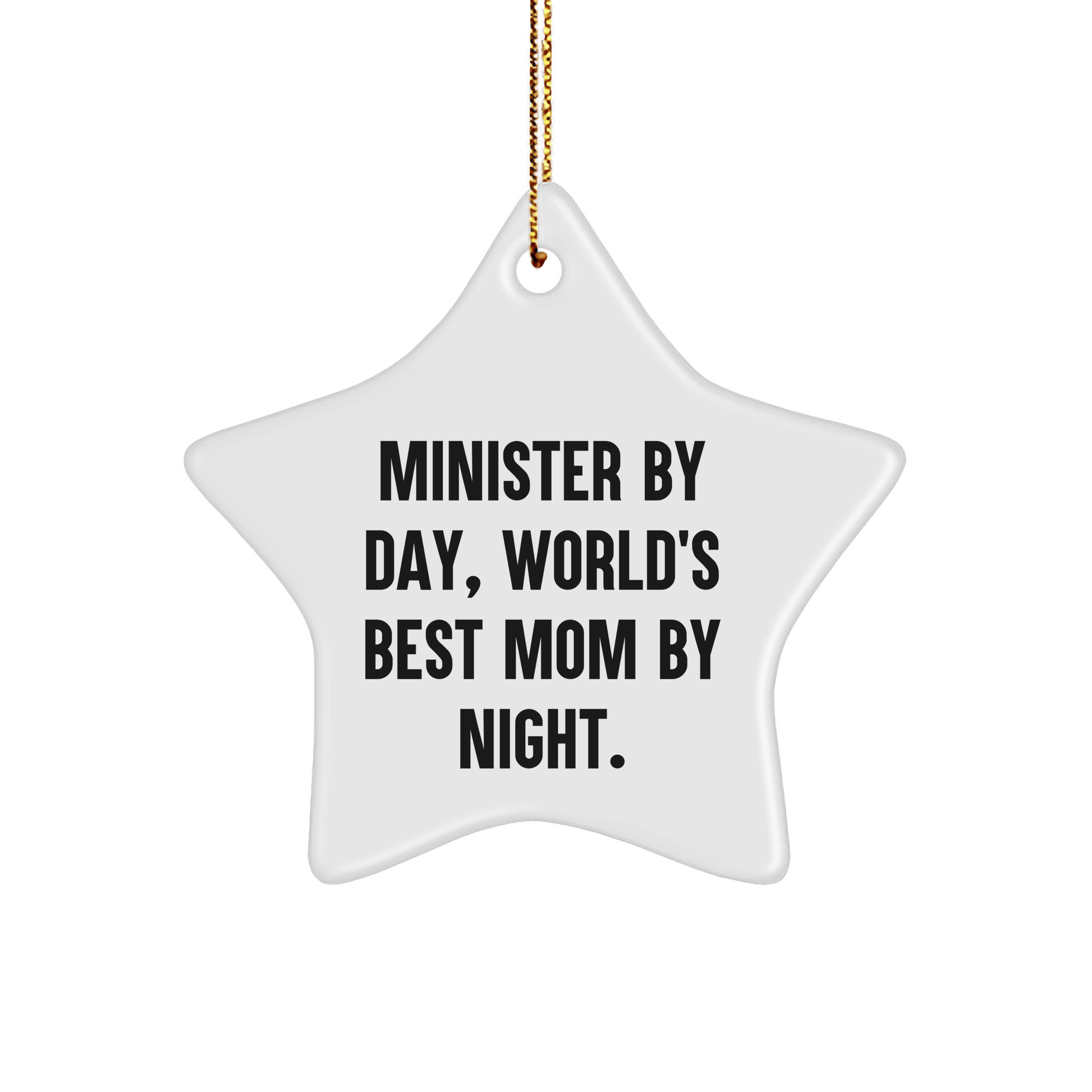 - This 'Minister By Day, World's Best Mom By Night.' Star Ornament is the ideal gift for any occasion, whether it's Christmas or just a thoughtful gesture