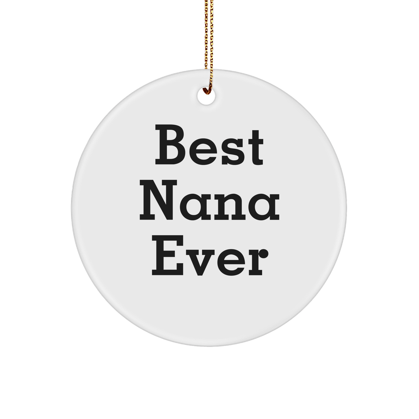 - Brighten up your Nana's Christmas with this funny and unique Circle Ornament, featuring the quote 'Best Nana Ever' in a playful and humorous way. This ornament is a great way to show your Nana how much you care and appreciate her.