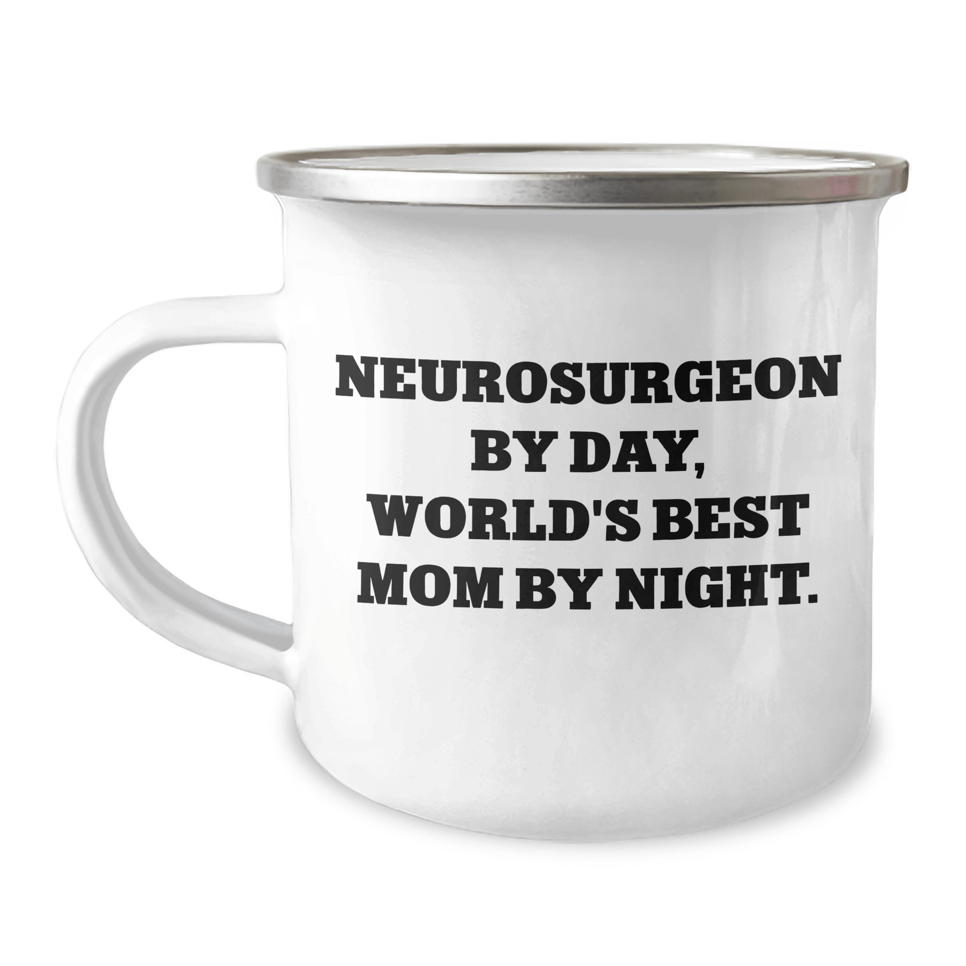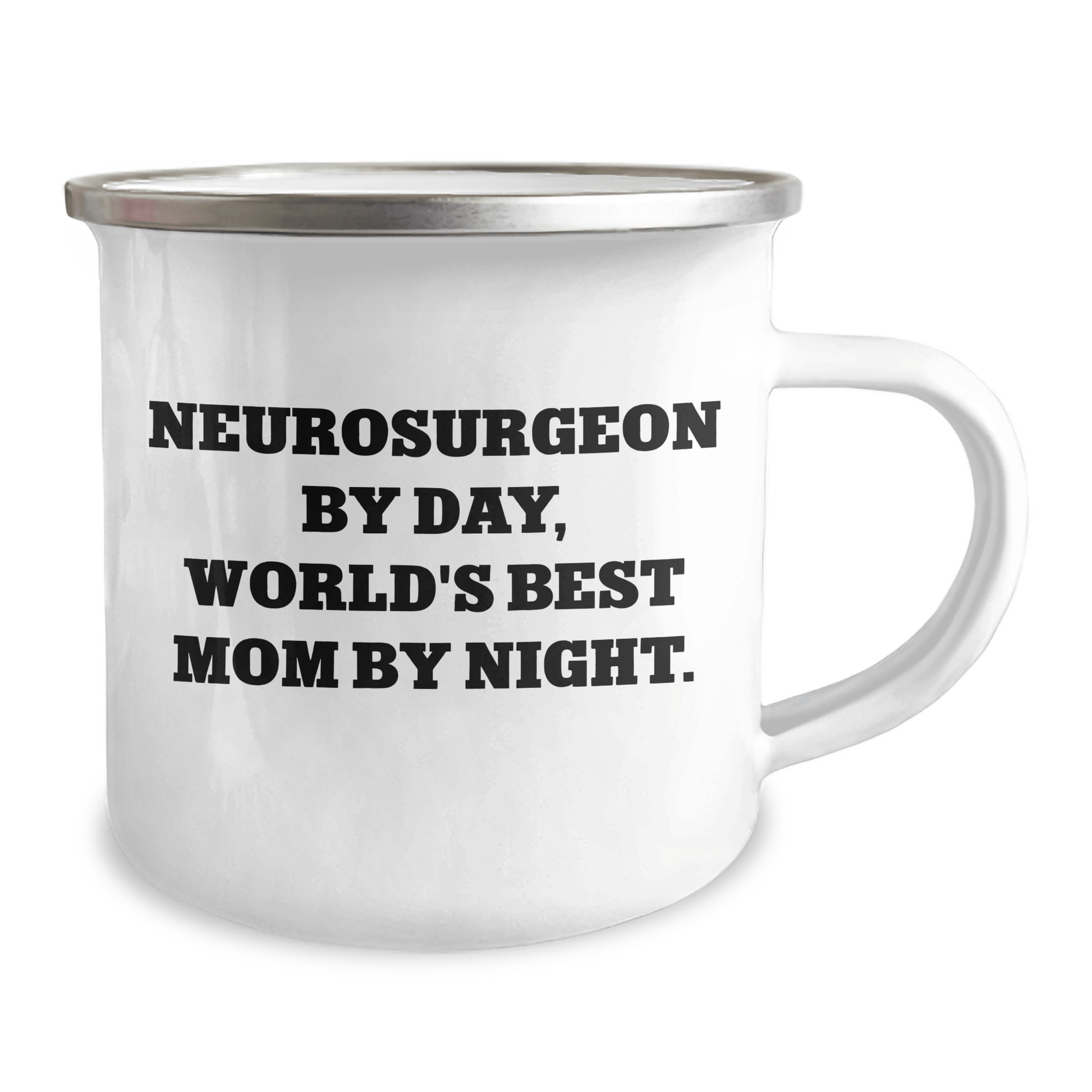 - Show your love for a 'Neurosurgeon By Day, World's Best Mom By Night.' with this unique camping mug, perfect for their next outdoor adventure. The stainless steel with enamel finish ensures durability and easy cleaning, while the 12 oz capacity is ideal for their morning coffee or tea.