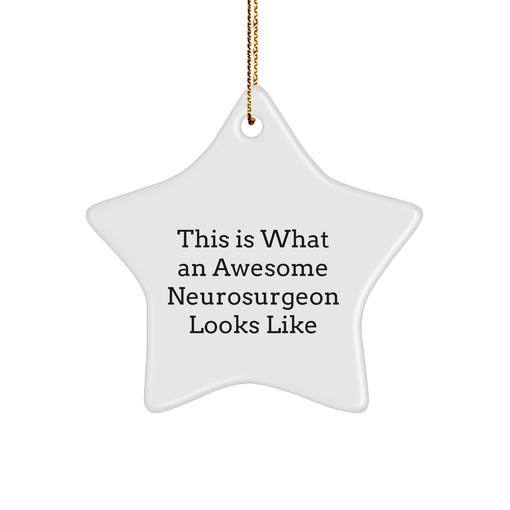 - Bring a smile to the face of your favorite Neurosurgeon with this funny Star Ornament, featuring the quote 'This Is What An Awesome Neurosurgeon Looks Like'. A unique and thoughtful gift for any occasion, including Christmas.