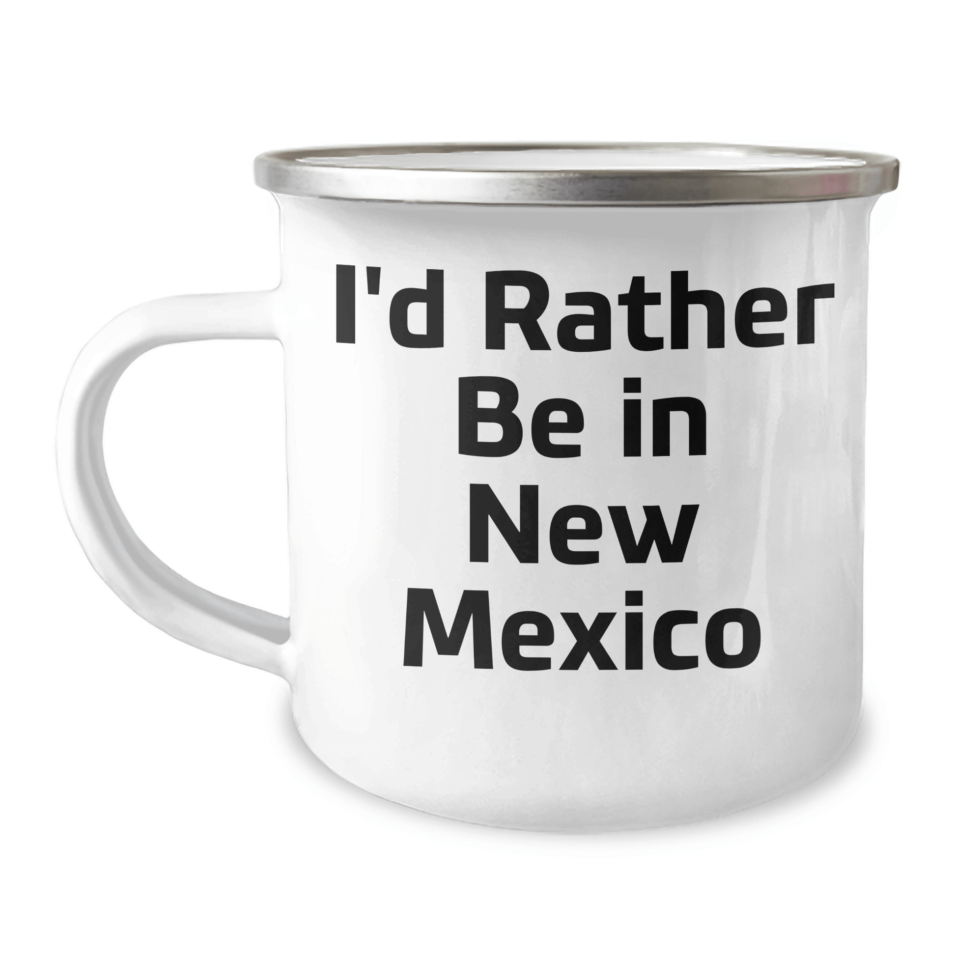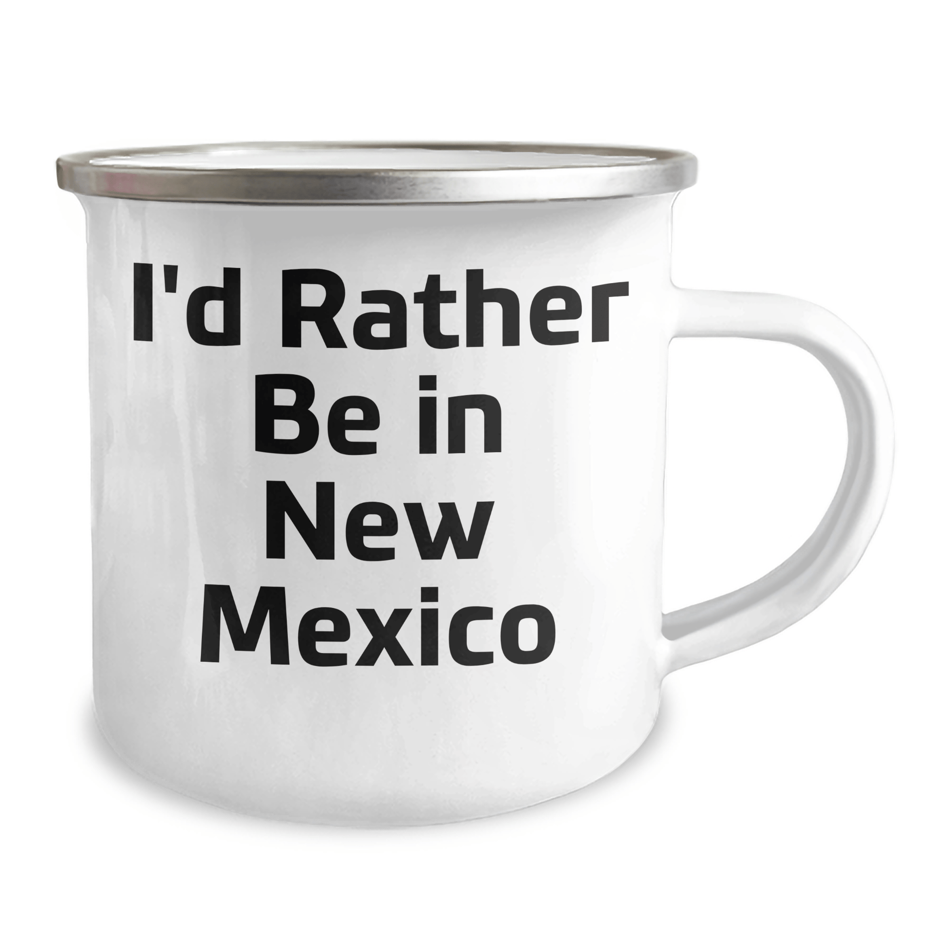 - This Camping Mug is a thoughtful gift for anyone who loves New Mexico, featuring the iconic quote 'I'd Rather Be In New Mexico'