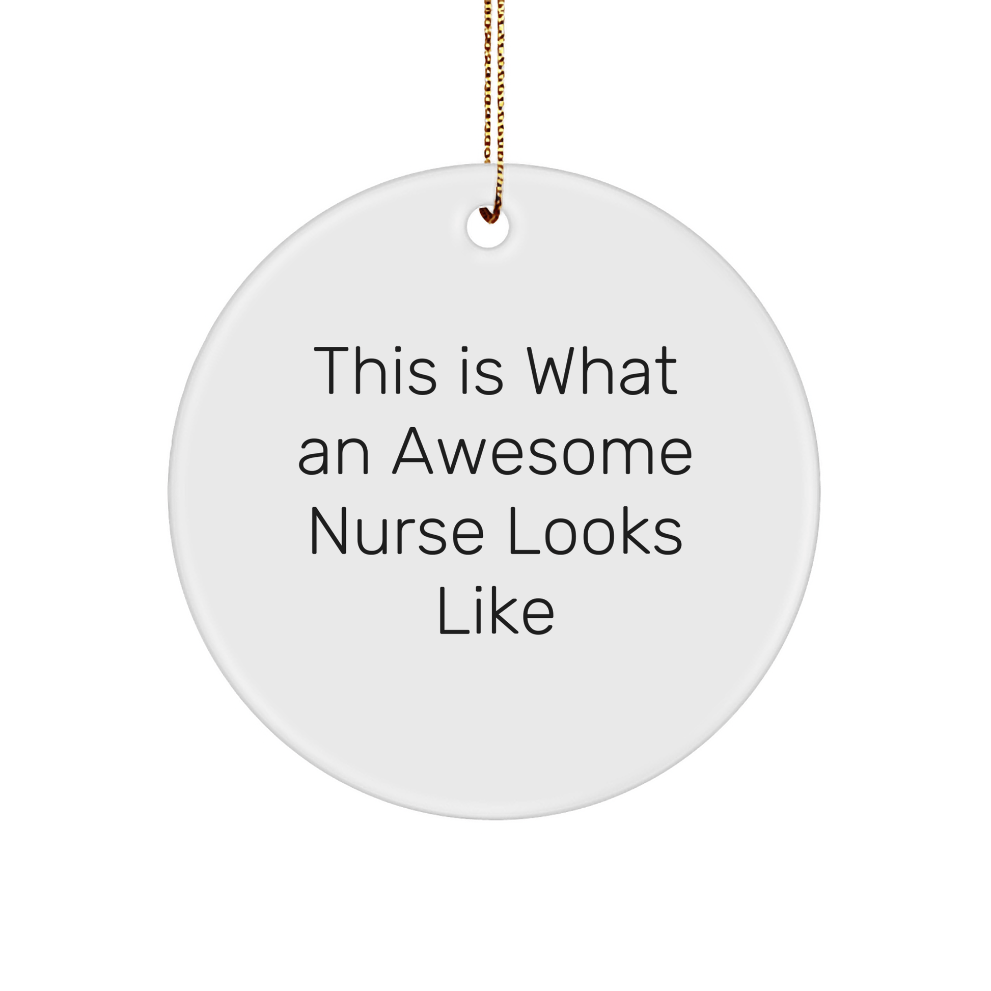 This quote, 'This Is What An Awesome Nurse Looks Like', is the perfect way to show your nurse just how much you admire their hard work and dedication. Whether you're shopping for a birthday gift, a holiday present, or just because, this ornament is sure to be a hit.
