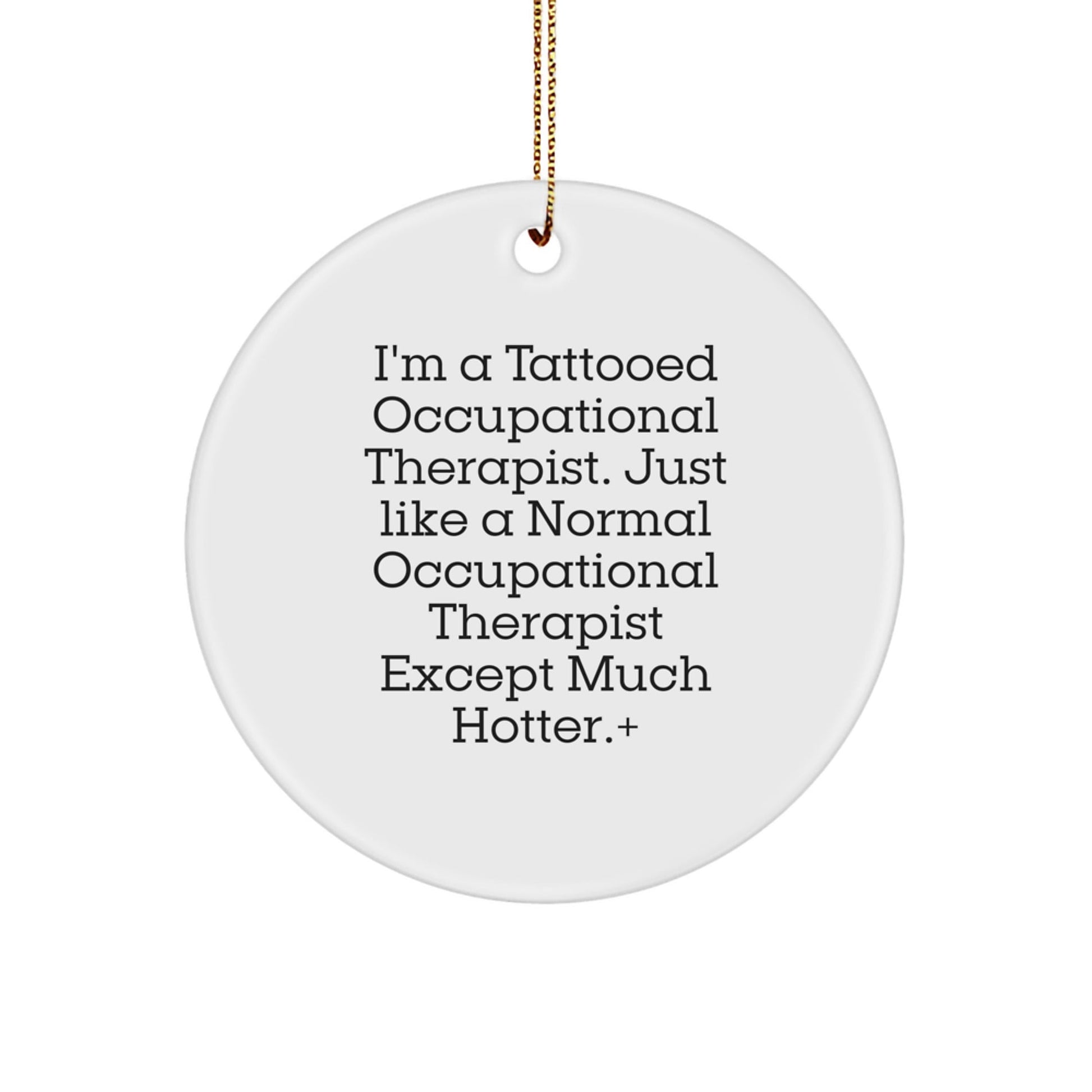 As a fun and quirky Occupational Therapist gift, this ornament is sure to be a hit with friends, family, and coworkers. So why wait? Get your 'I'm A Tattooed Occupational Therapist' Circle Ornament today and show off your unique sense of humor!