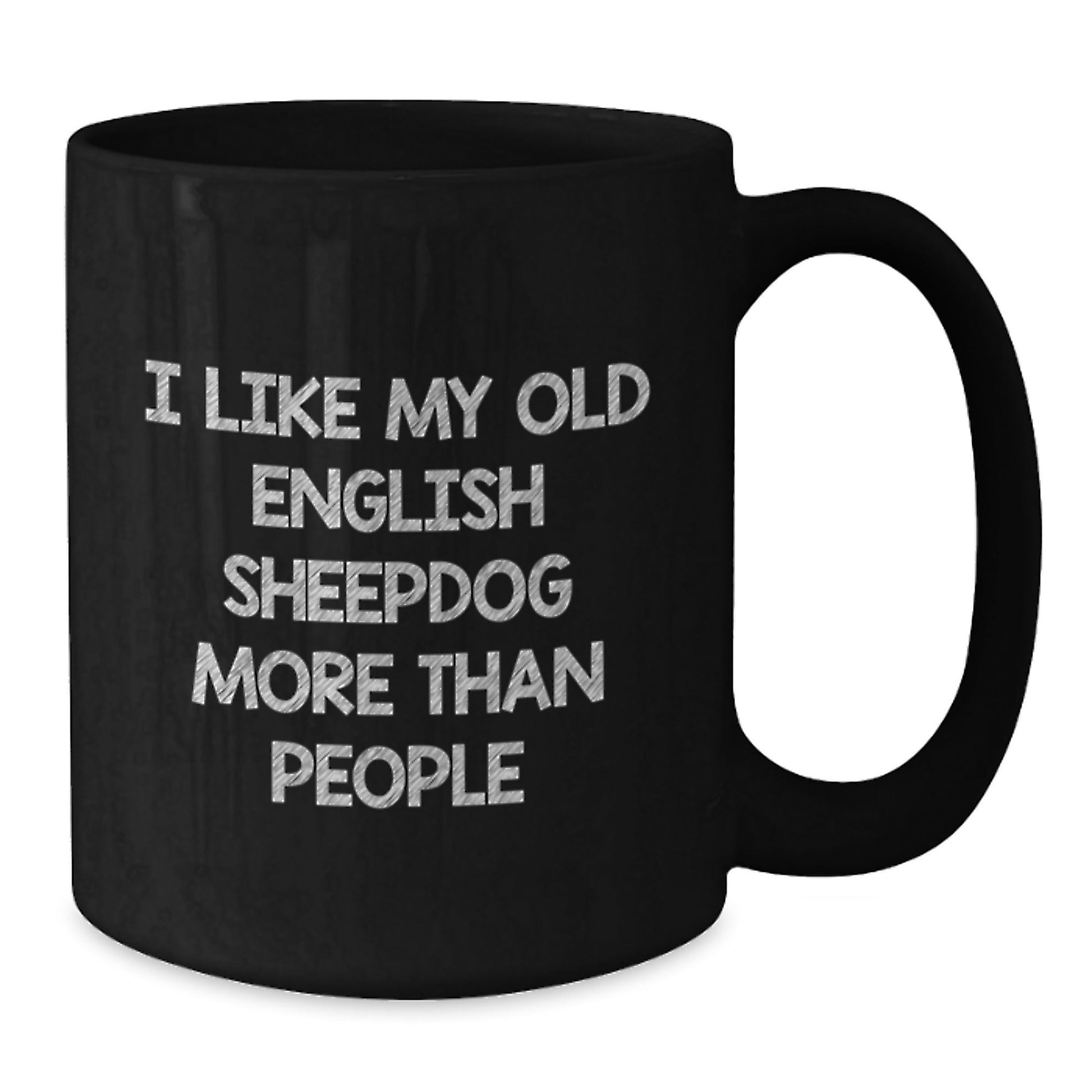 • This black coffee mug is a unique and thoughtful gift for any Old English SheepDog lover, featuring the quote 'I Like My Old English Sheepdog More Than People' in a fun and playful design.