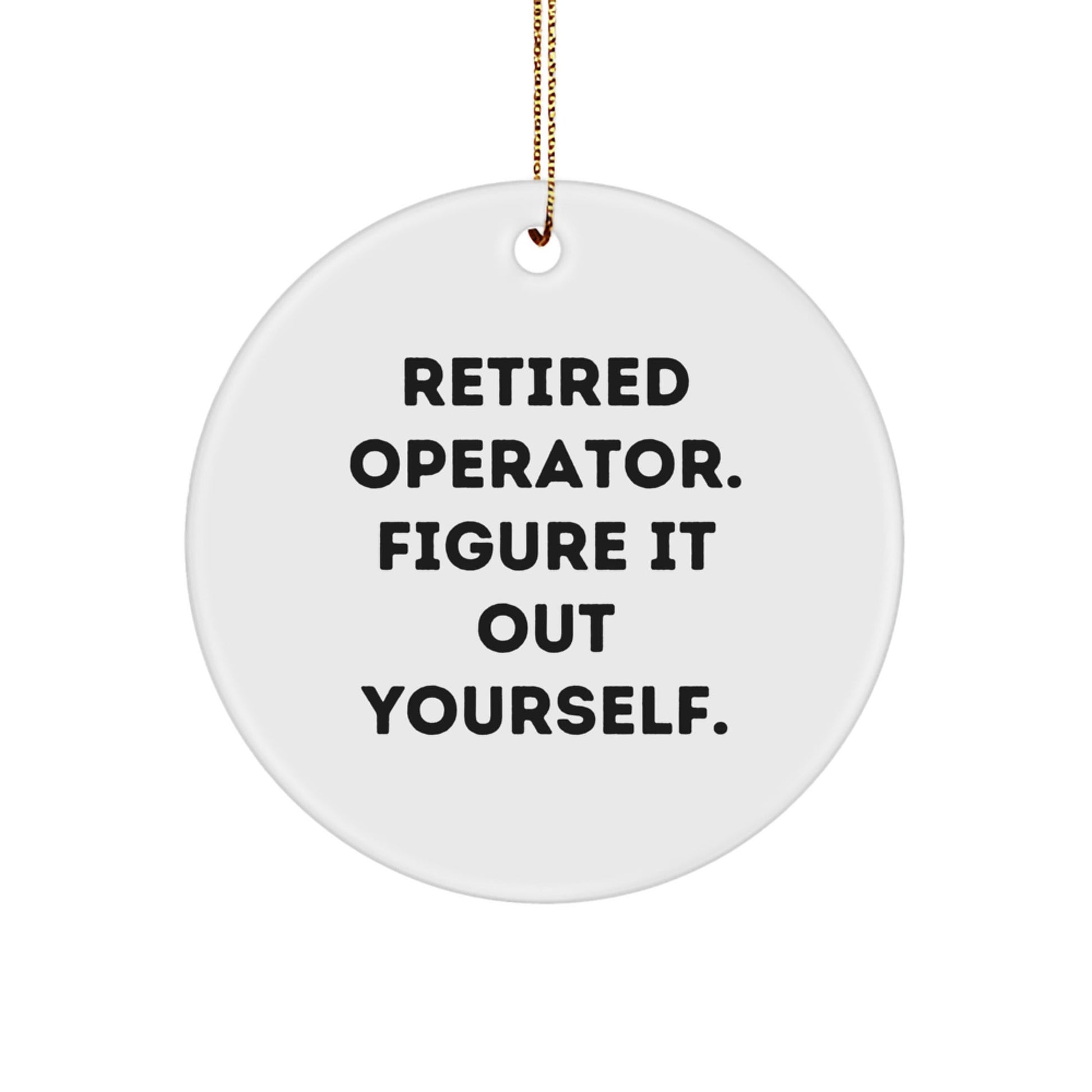 - This 'Retired Operator. Figure It Out Yourself.' Circle Ornament is a humorous way to celebrate the Operator's years of service, making it a great gift for coworkers, friends, and family.