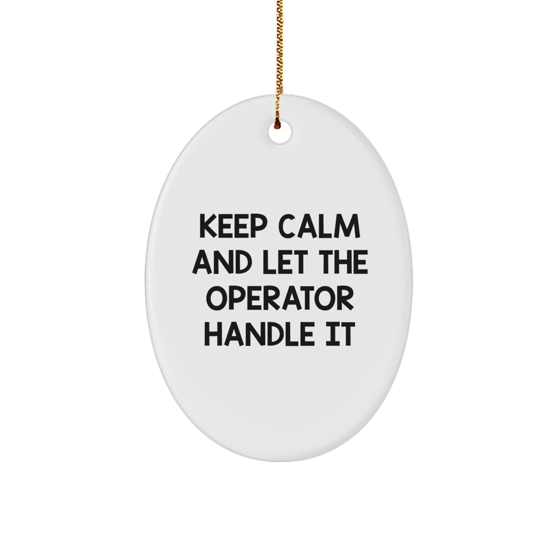 - Stand out from the crowd with this unique Operator Oval Ornament, featuring a quote that will bring a smile to anyone's face: 'Keep Calm And Let The Operator Handle It'. Its lightweight and resistant design ensures it will withstand the hustle and bustle of the holiday season, perfect for families with little ones. (Operator, Ornament, Christmas, Quote, Unique)