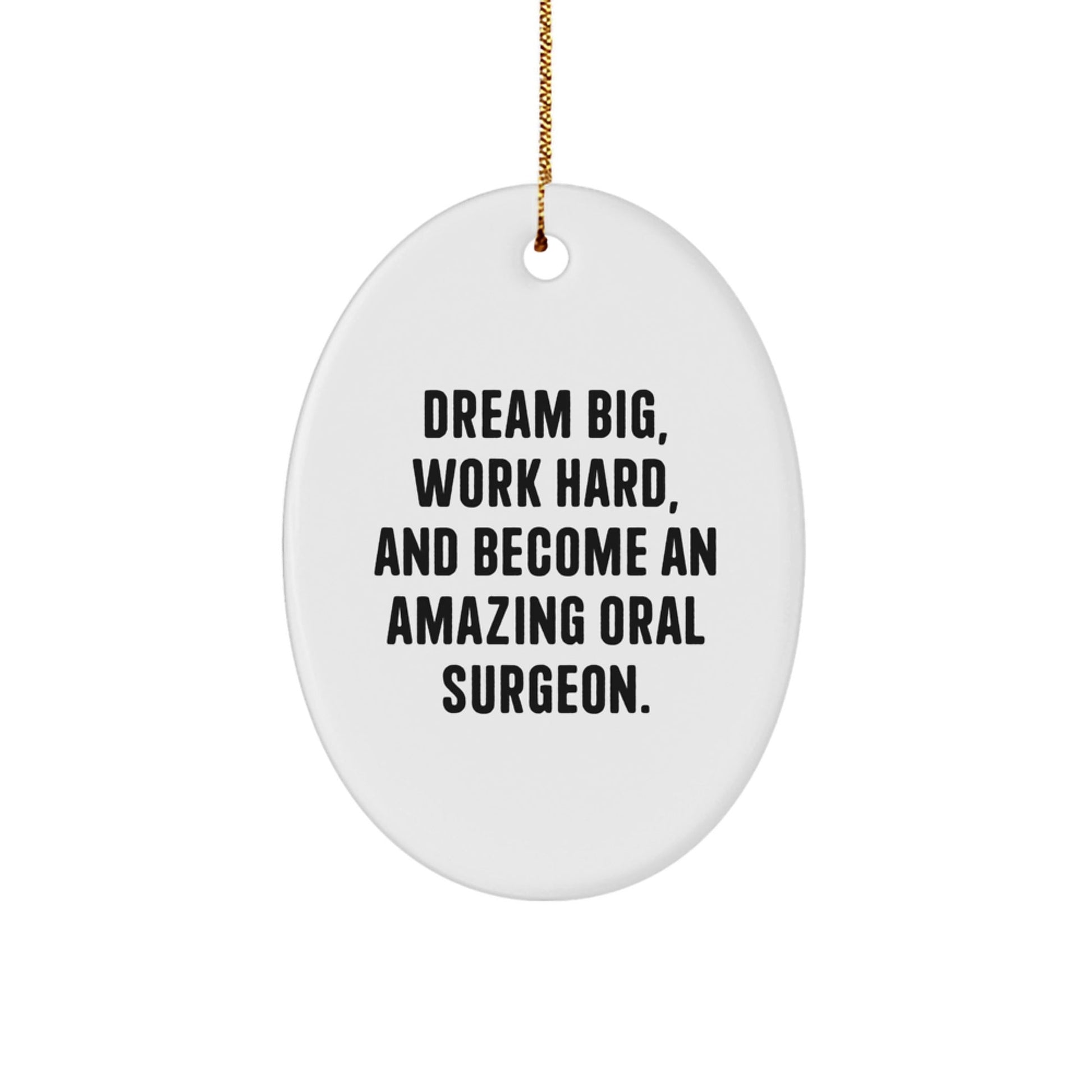- This Oval Ornament is a unique and thoughtful gift for Oral Surgeons, perfect for inspiring them to dream big and work hard.