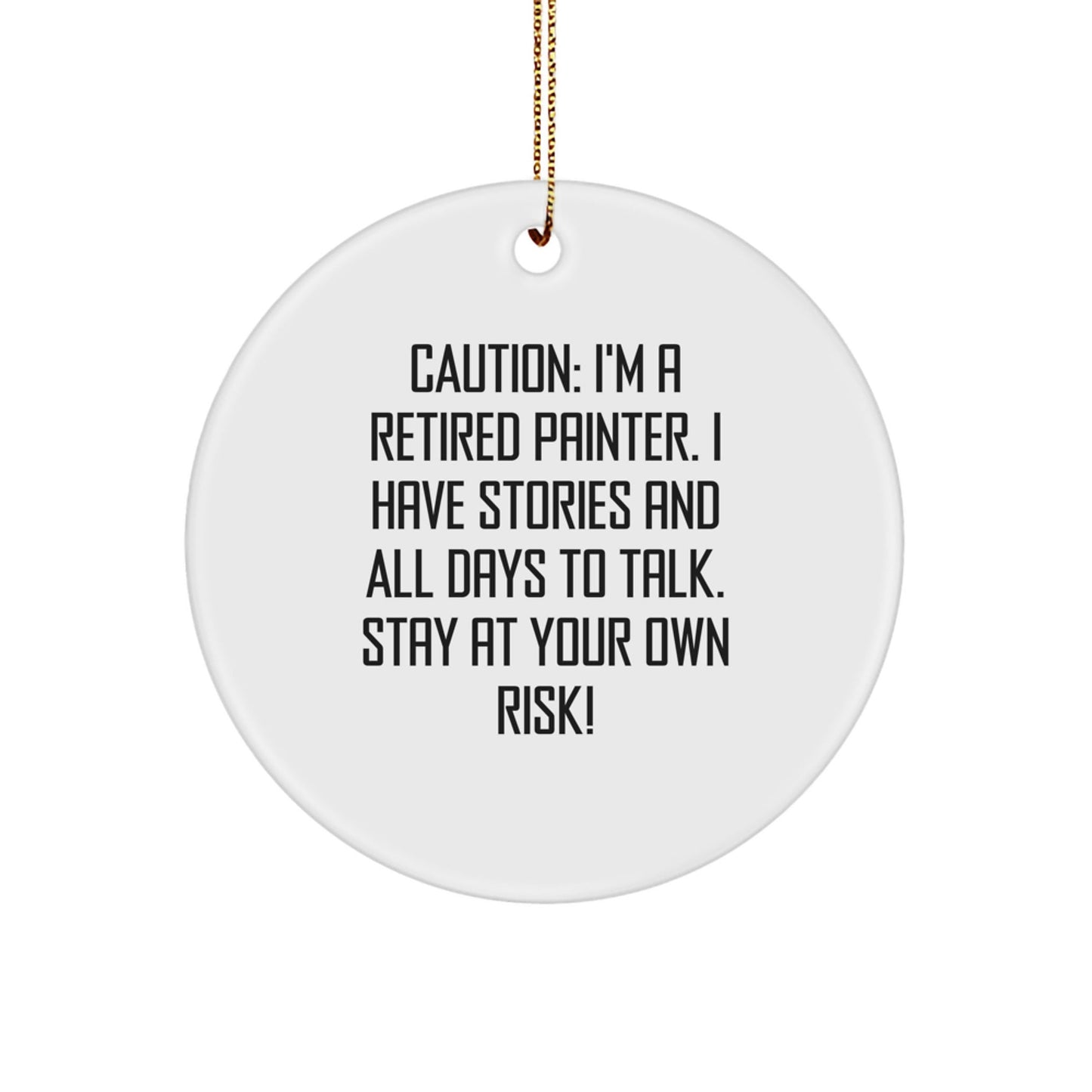 As a retired painter, I have stories and all days to talk. But with this Circle Ornament, you can stay at your own risk! Get ready to add some humor and personality to your home or office decor. This gift is perfect for painters, art lovers, and anyone who appreciates a good laugh. So don't wait - order now and get ready to talk the talk of the painter town!