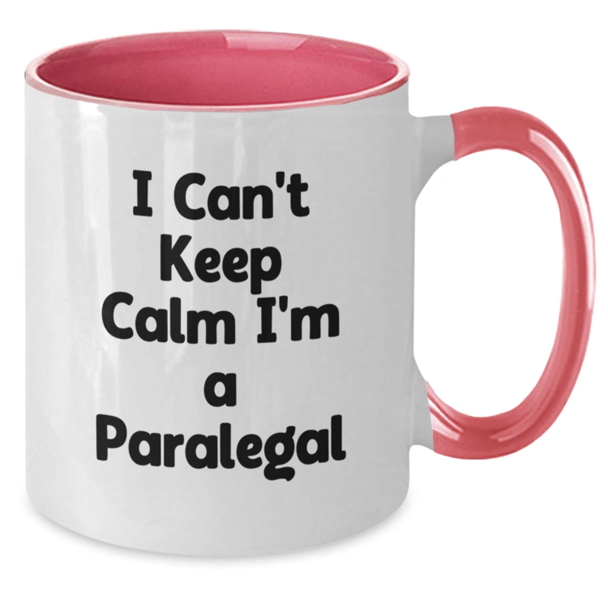 - Start your day off right with a cup of coffee and a smile with this 'I Can't Keep Calm I'm A Paralegal' Two Tone Coffee Mug, designed specifically for paralegals like you who take pride in their profession. Made from ceramic and available in four color combinations, this mug is not only functional but also a great way to showcase your passion for law. (200 characters)