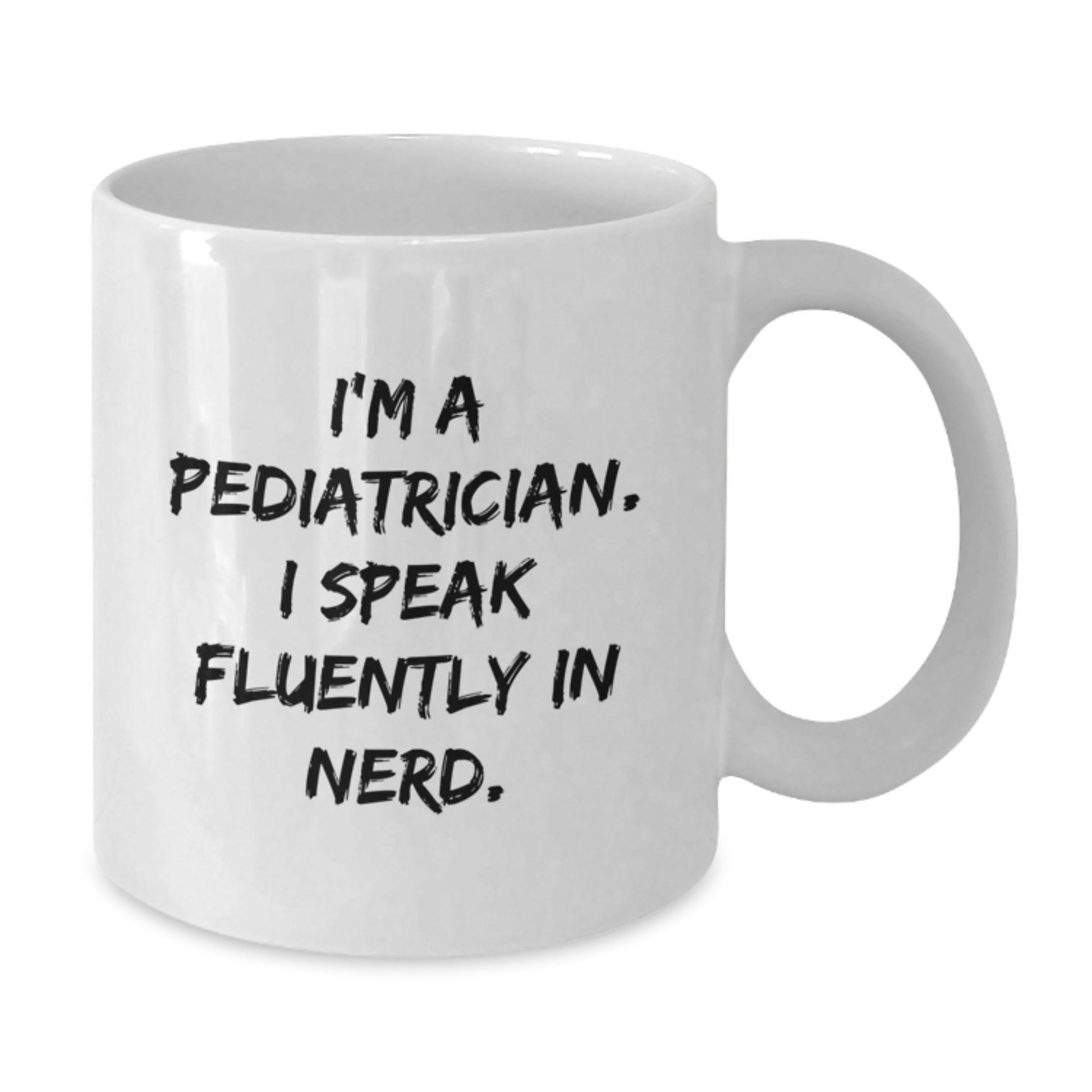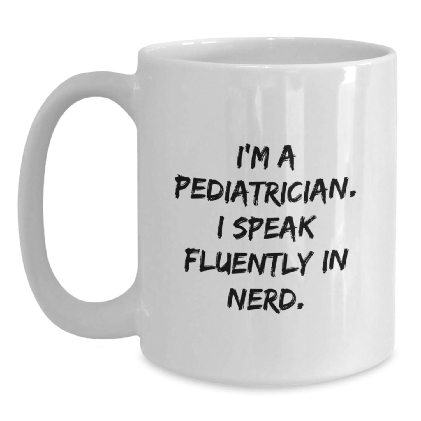 - The mug's quote 'I'm A Pediatrician. I Speak Fluently In genius.' is a humorous and relatable way to show appreciation for their hard work