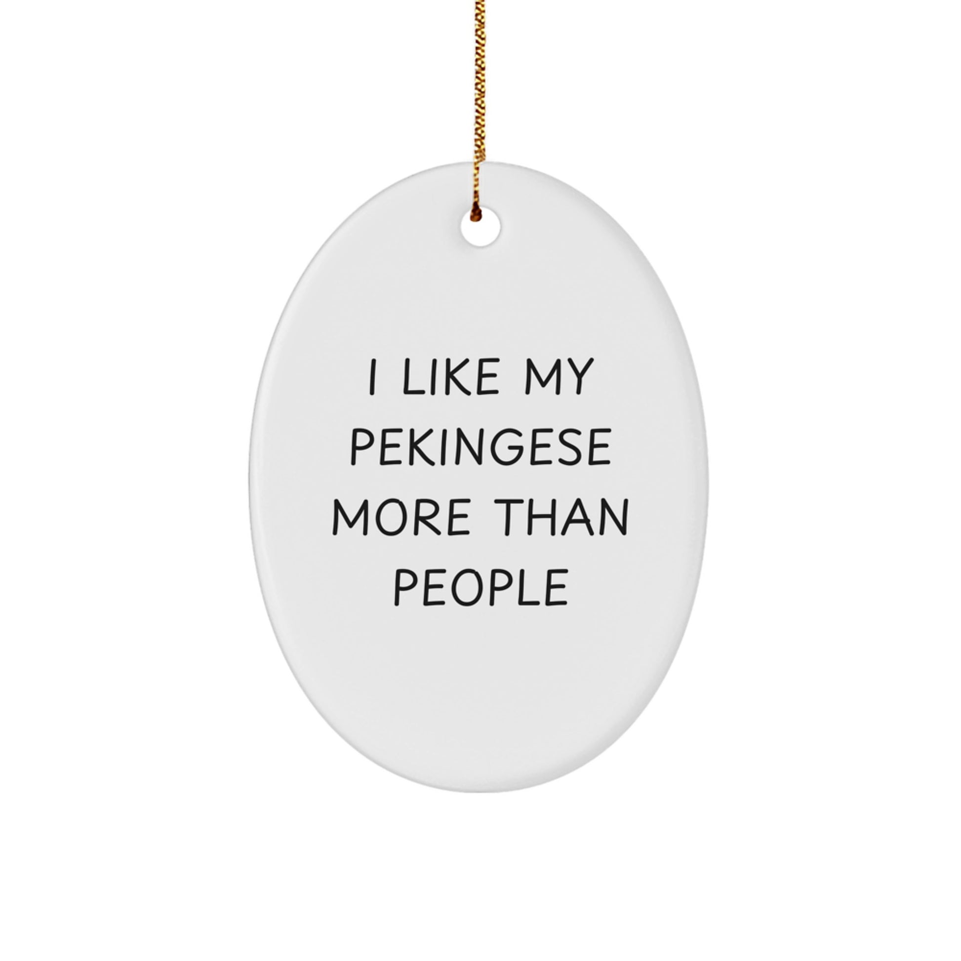 - I Like My Pekingese More Than People, and now you can show off your devotion with this stunning Oval Ornament. Its vibrant colors and detailed design will make it a treasured keepsake for years to come.