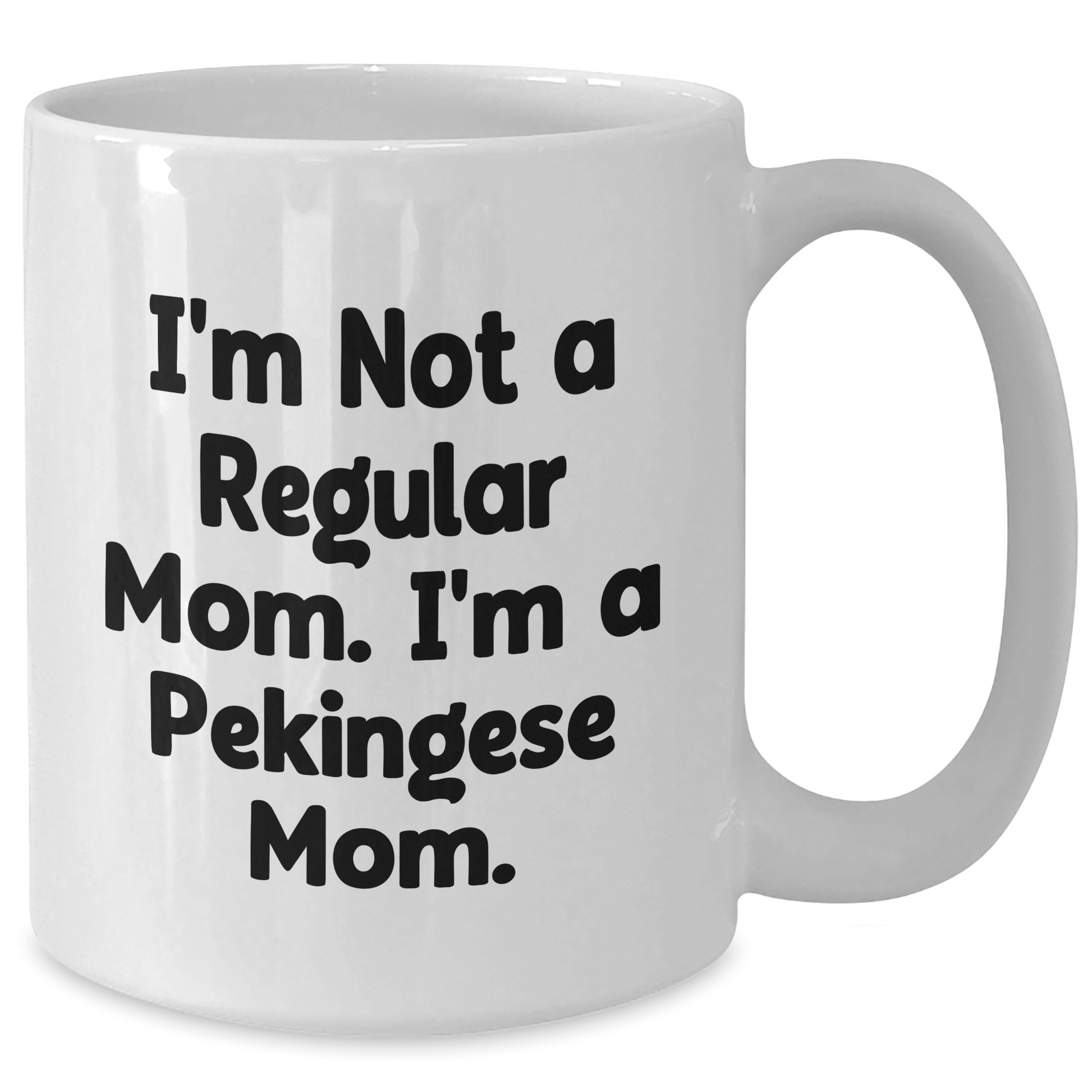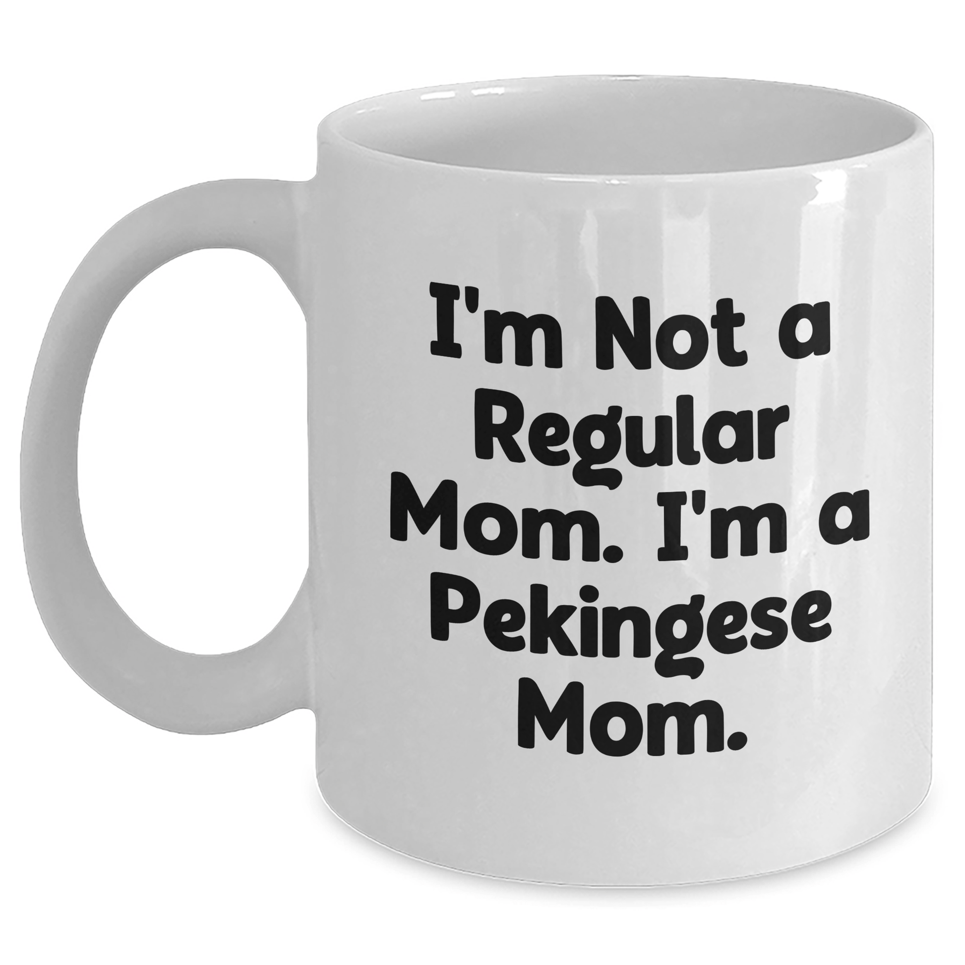 - This funny White Coffee Mug is a unique gift for Pekingese Dog lovers and new moms who 'I'm Not A Regular Mom. I'm A Pekingese Mom.'