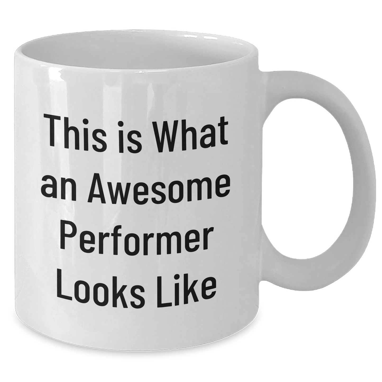 - Make a statement with this 'This Is What An Awesome Performer Looks Like' white coffee mug, perfect for graduates who are ready to take the stage and shine. With its 11oz or 15oz capacity, you can enjoy your favorite hot or cold beverage while showing off your unique style.