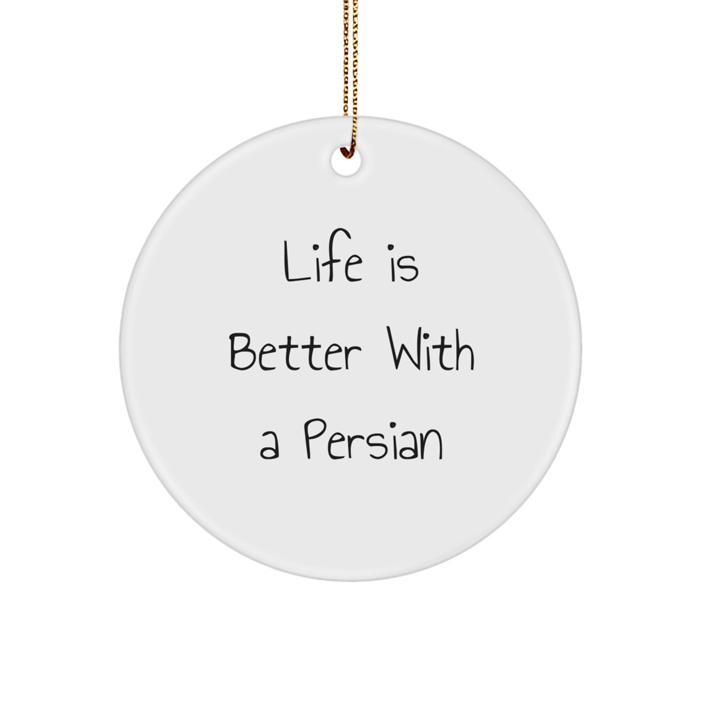- Bring home the Funny Persian Cat Circle Ornament and show your love for these adorable felines. Made from sturdy MDF with a high-gloss plastic finish, this ornament is both beautiful and long-lasting. The vibrant colors and funny quote 'Life Is Better With A Persian' will surely brighten up any room.