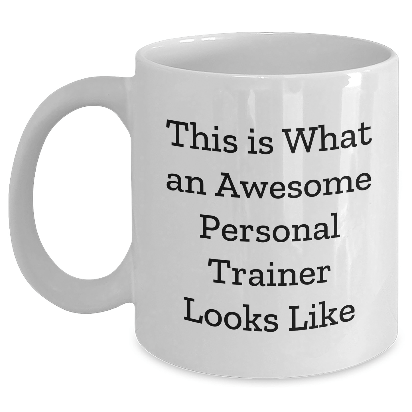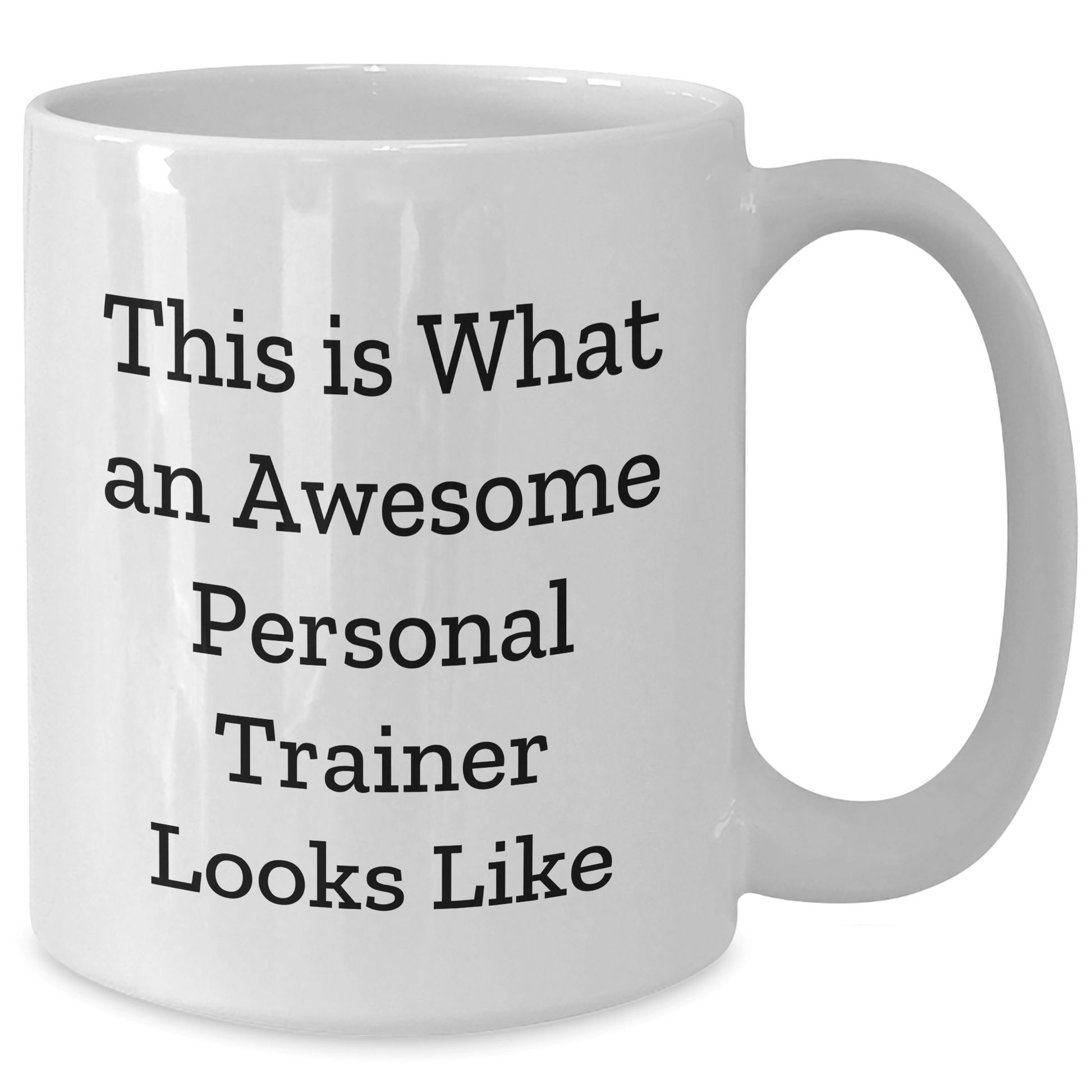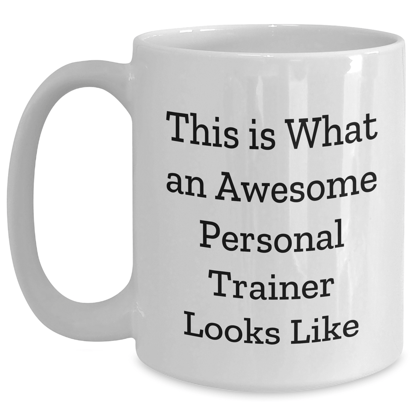 Are you looking for a unique gift for your favorite personal trainer? This funny quote, 'This Is What An Awesome Personal Trainer Looks Like', is the perfect way to show your appreciation. Our white coffee mug is ceramic, microwave, and dishwasher safe, making it a practical and thoughtful gift. Whether you're a friend, family member, or coworker, this mug is a great way to celebrate their hard work and dedication. Perfect for graduation or any other occasion, this mug is sure to bring a smile to their face. So why wait? Get your personal trainer the gift they deserve today!