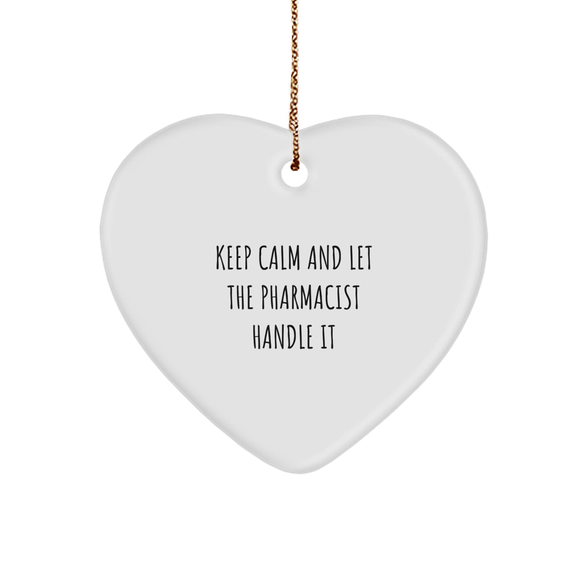 - Christmas is a time for giving and sharing, and what better way to do that than with a Heart Ornament for a pharmacist? It's a thoughtful gift idea that shows you appreciate their hard work and dedication. So, make this Christmas one to remember with a Keep Calm And Let The Pharmacist Handle It Heart Ornament.