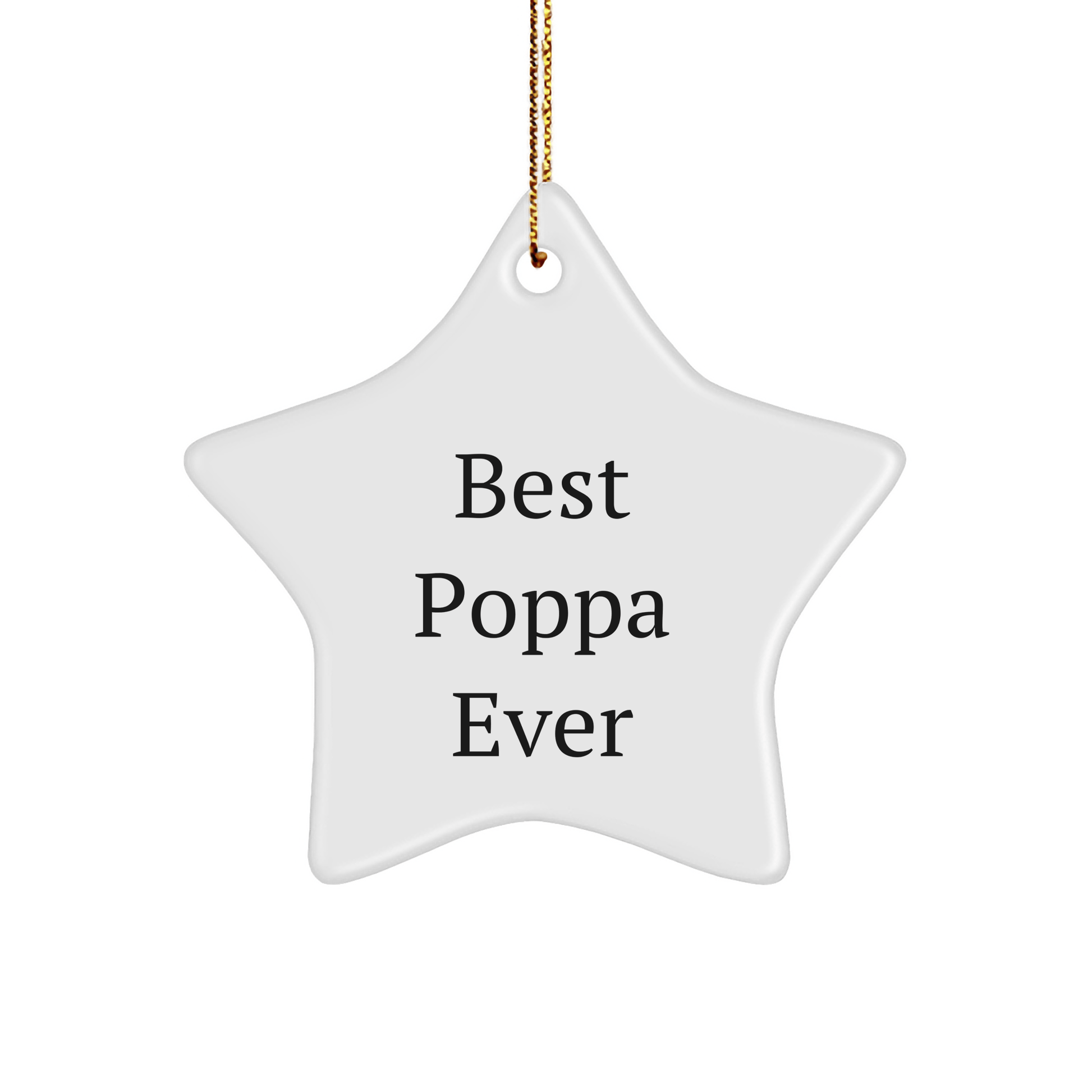 Make this Christmas special for the best poppa ever with this unique and funny star ornament! As a proud poppa, he deserves a gift that's out of this world, and this vibrant white star ornament is sure to bring a smile to his face. Crafted from sturdy MDF with a high-gloss plastic finish, it's lightweight and resistant to breaking, making it perfect for households with children or pets. The festive gold cord makes it easy to hang, and the subtle design ensures it blends seamlessly with any Christmas decor. Whether it's from family, friends, or coworkers, this thoughtful gift is sure to be treasured. So, get ready to make some unforgettable memories with the best poppa ever!