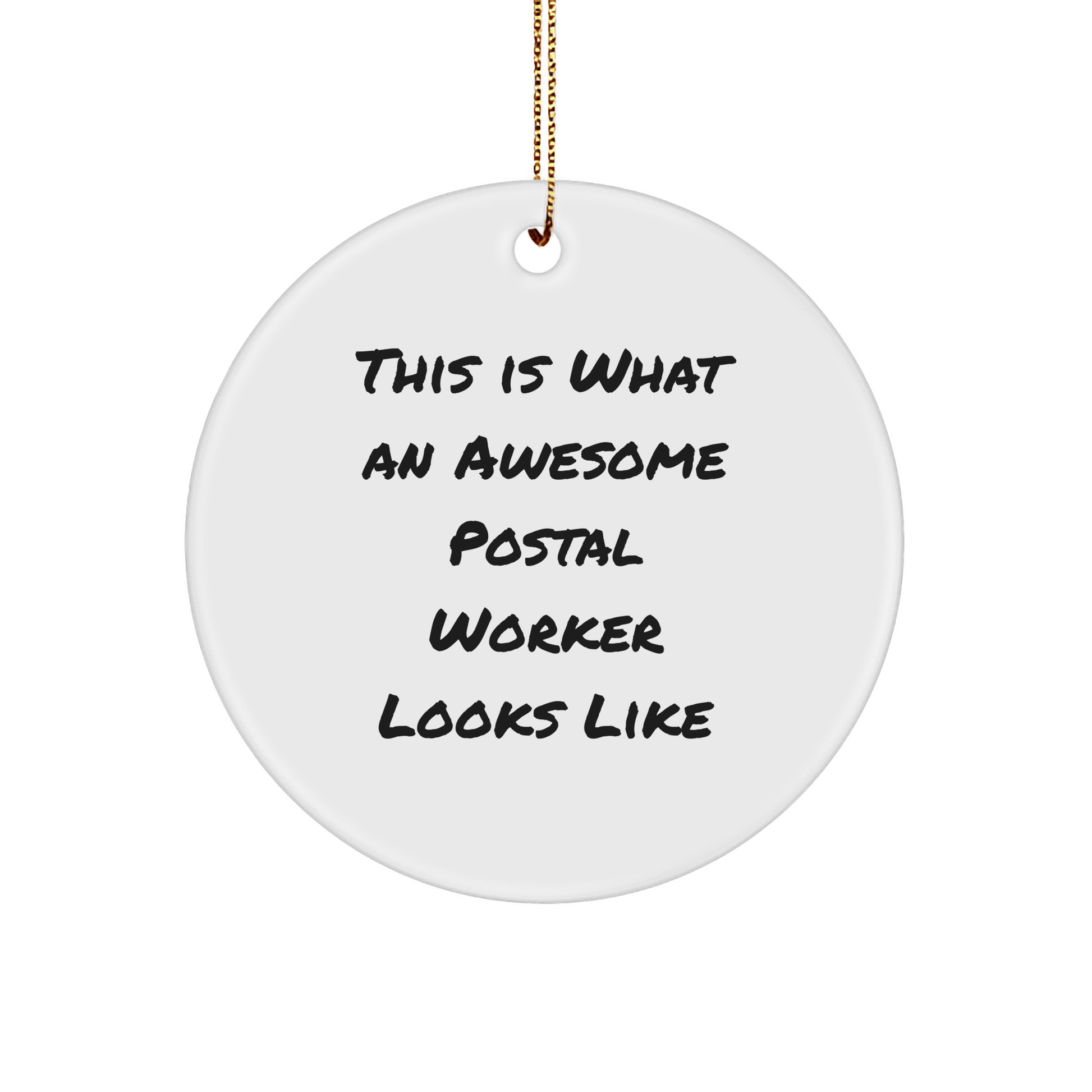 - Add a touch of humor to your office or home decor with this funny circle ornament featuring the quote 'This Is What An Awesome Postal Worker Looks Like'.