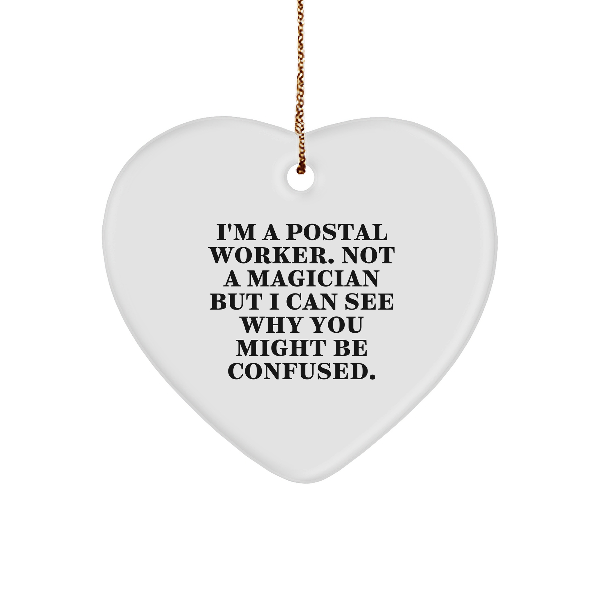 Get ready to delight the postal workers in your life with this hilarious and thoughtful gift! As they say, 'I'm A Postal Worker. Not A Magician But I Can See Why You Might Be Confused.' This heart-shaped ornament is a unique and personalized way to show your appreciation for their hard work and dedication.
