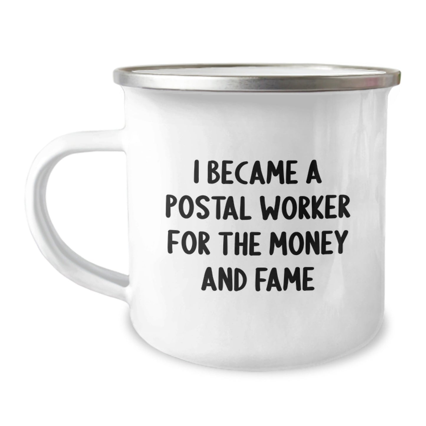 Get ready to brighten up the day of your favorite postal worker with this hilarious and unique camping mug! As they say, 'I Became A Postal Worker For The Money And Fame', but deep down, they know it's the joy of delivering smiles that really matters. This 12 oz stainless steel mug with enamel finish is the ideal gift for any postal worker, whether it's for men or women. Hand washing with mild detergent is recommended for this permanent printing that won't fade after washing. Whether it's for a graduation celebration or just a fun treat, this mug is sure to bring a smile to their face. So, go ahead and show your appreciation for your postal worker's hard work with this fun and quirky gift!
