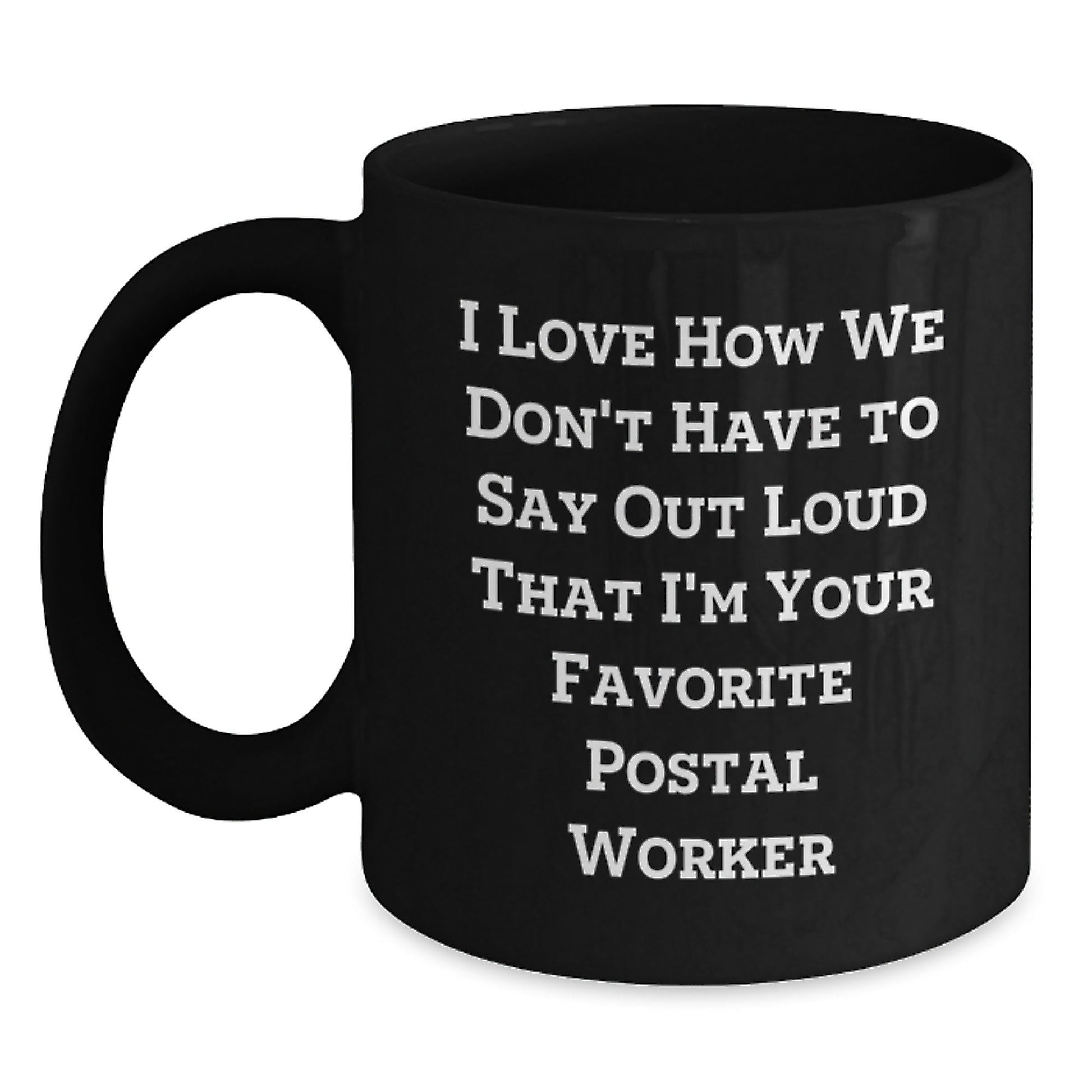 Funny Postal Worker Gifts from Friends - 'I Love How We Don't Have To Say Out Loud That I'm Your Favorite Postal Worker' Quote on Black Coffee Mug for Birthday