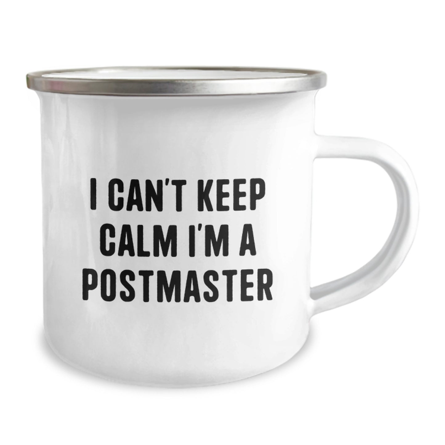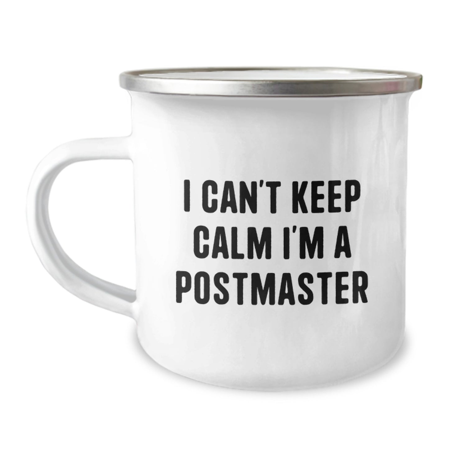 - This Camping Mug is perfect for Postmaster gifts, featuring a funny quote that says 'I Can't Keep Calm I'm A Postmaster', making it a great way to show your appreciation for their hard work and dedication. It's a sturdy and long-lasting gift that won't fade after washing.