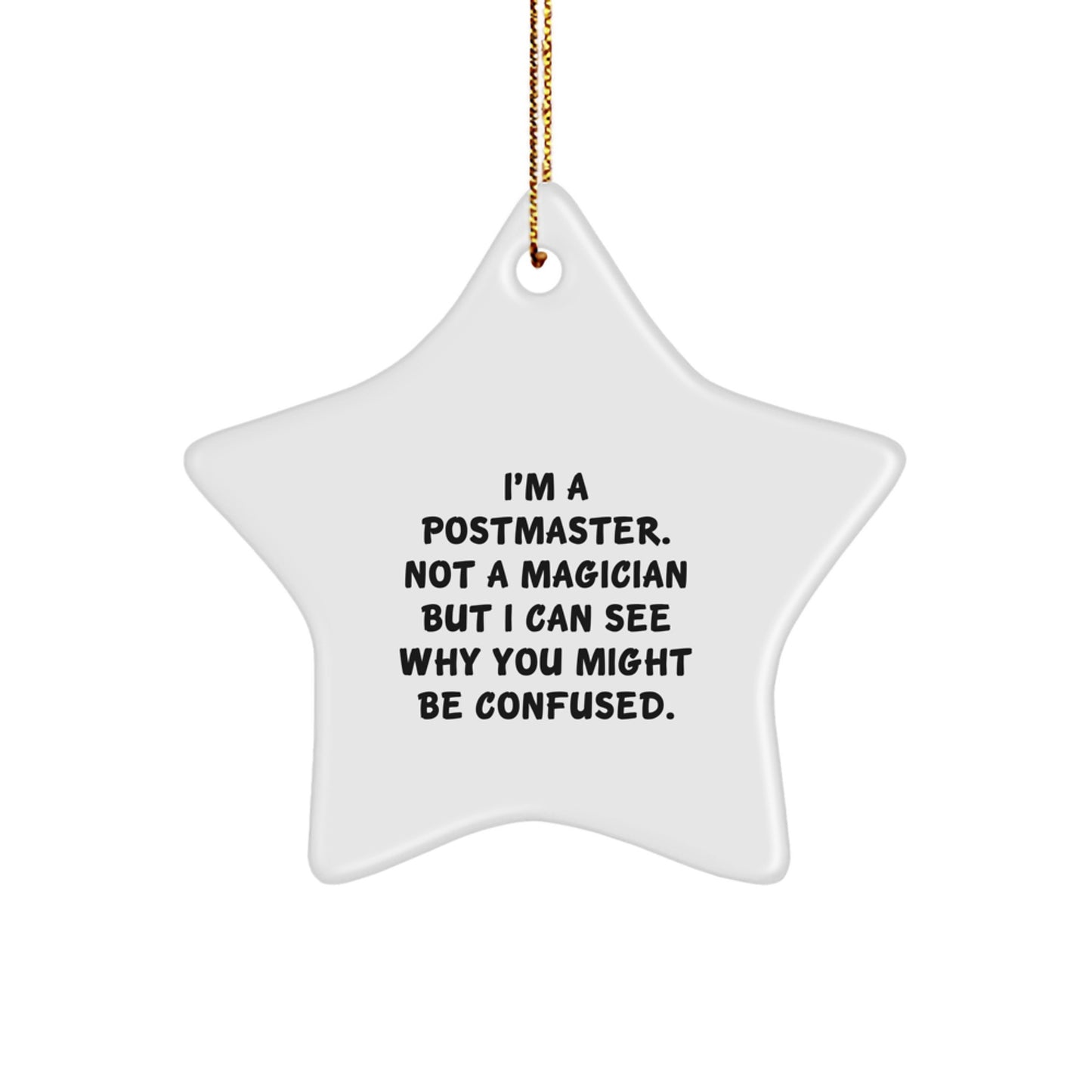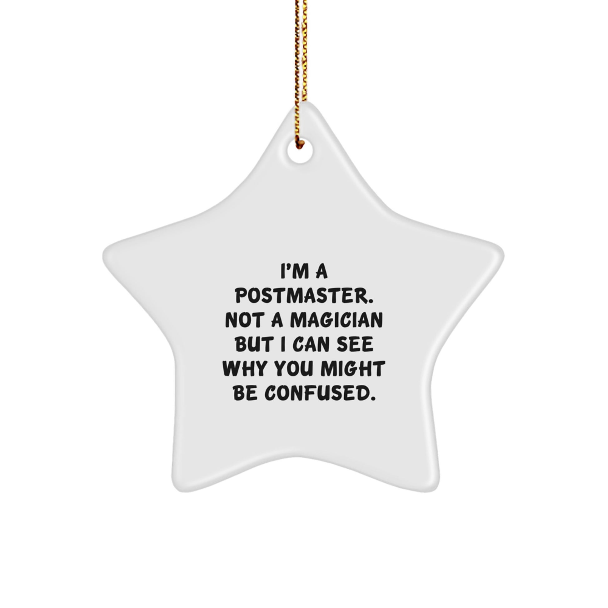 This ornament is a great way to add some humor to your holiday decor. The quote 'I'm A Postmaster. Not A Magician But I Can See Why You Might Be Confused.' is a funny and relatable message that any Postmaster would love. Whether you're giving it as a gift or keeping it for yourself, this ornament is sure to bring a smile to your face. So why wait? Get your Funny Postmaster Gifts from Friends today and show your appreciation for the Postmaster in your life.