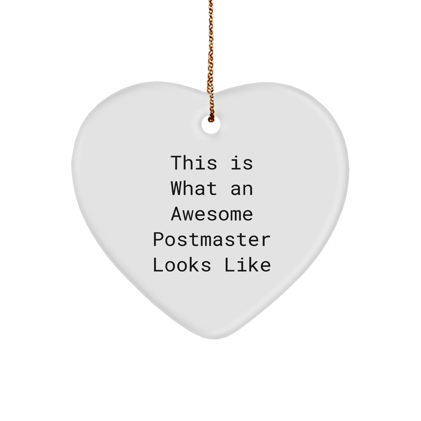 - 'This Is What An Awesome Postmaster Looks Like' - Our Postmaster Heart Ornament is the perfect way to share your love and appreciation for the postmaster in your life. Made from sturdy MDF with a high-gloss plastic finish, it's designed to withstand the test of time and is perfect for hanging in your home or office.