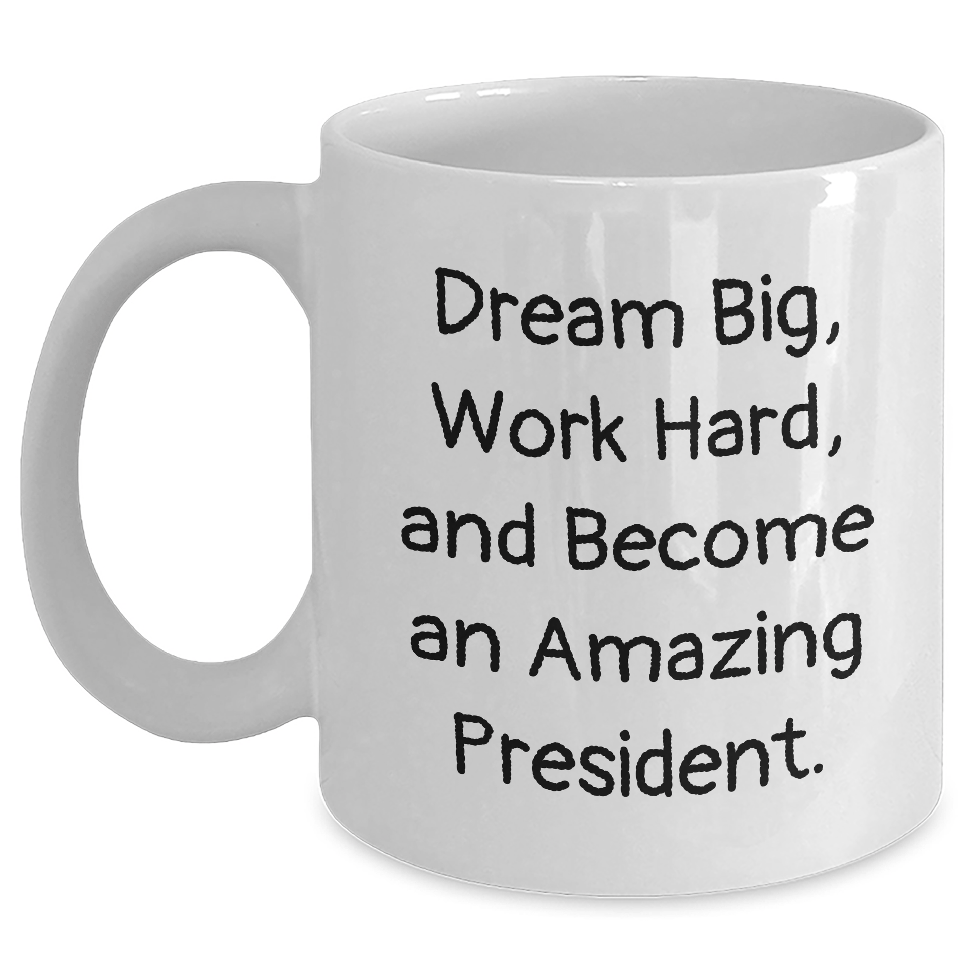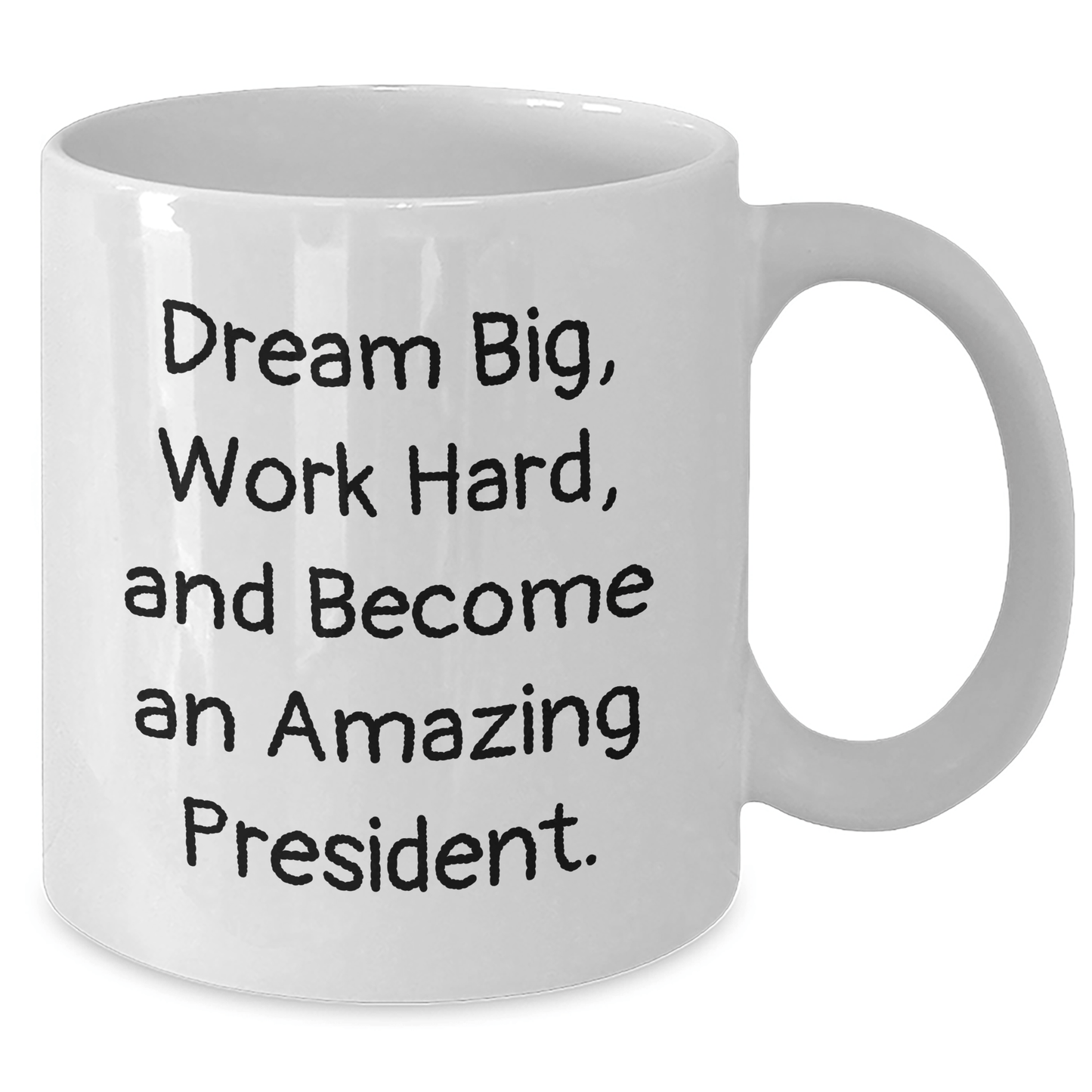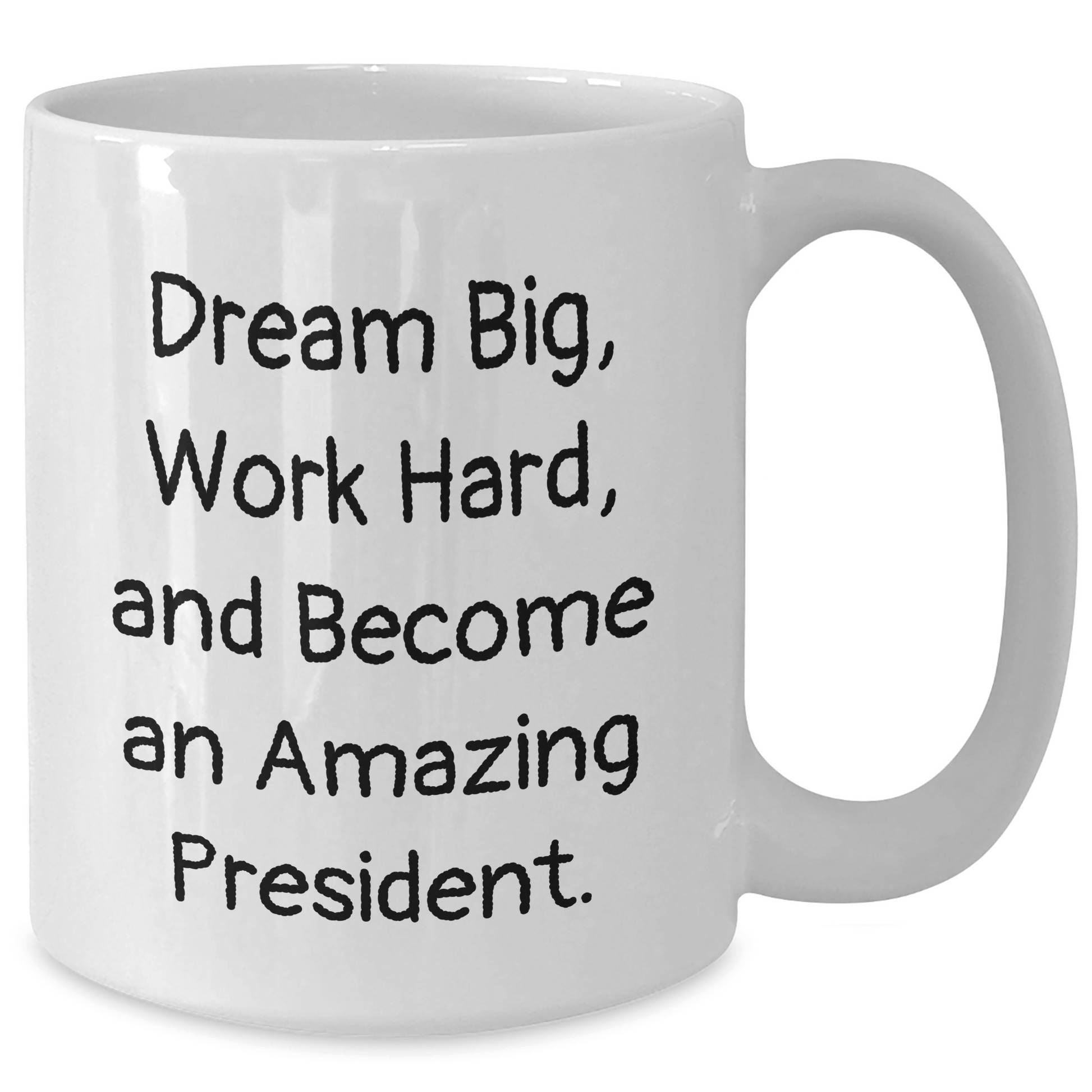 So why wait? Order this 'Dream Big, Work Hard, And Become An Amazing President.' white coffee mug today and make someone's day a little brighter!