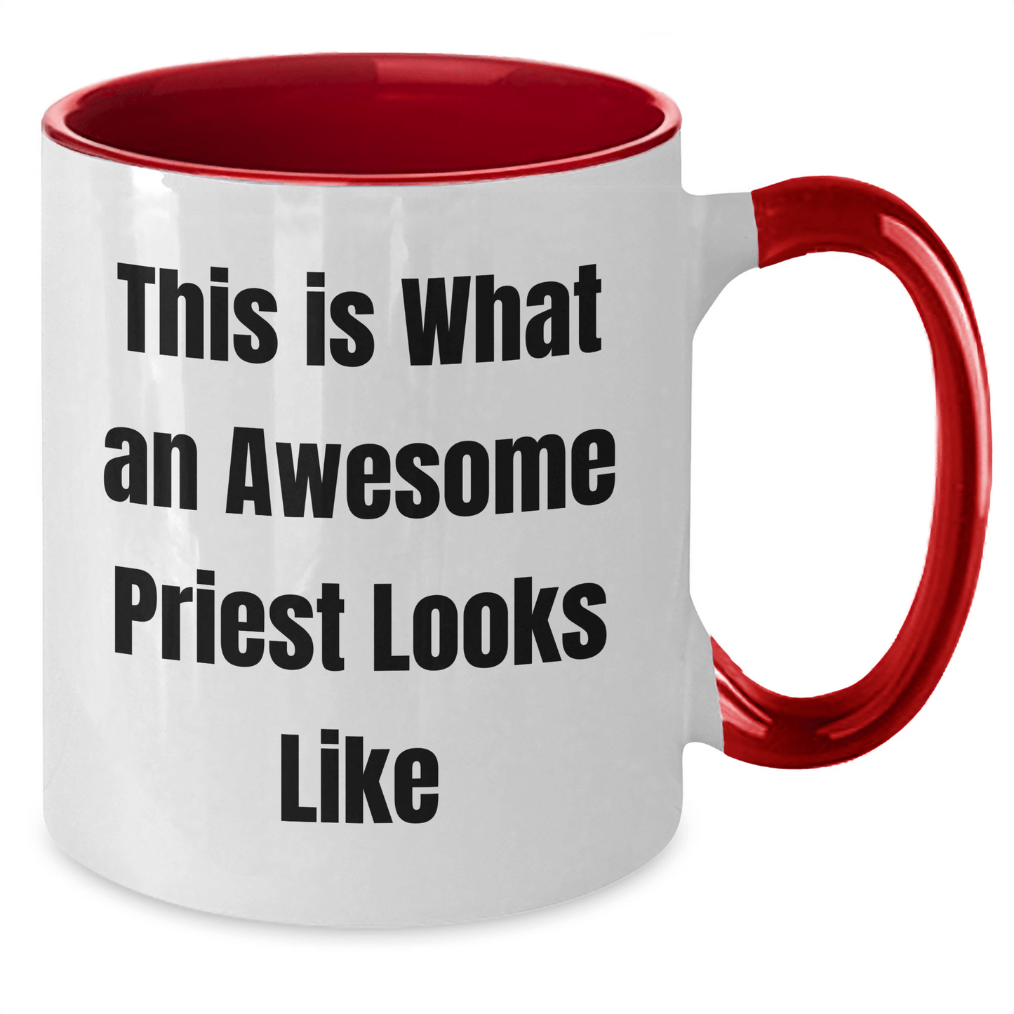 - Make a meaningful gift for the special priest in your life with this unique Two Tone Coffee Mug, featuring the inspiring quote 'This Is What An Awesome Priest Looks Like'.