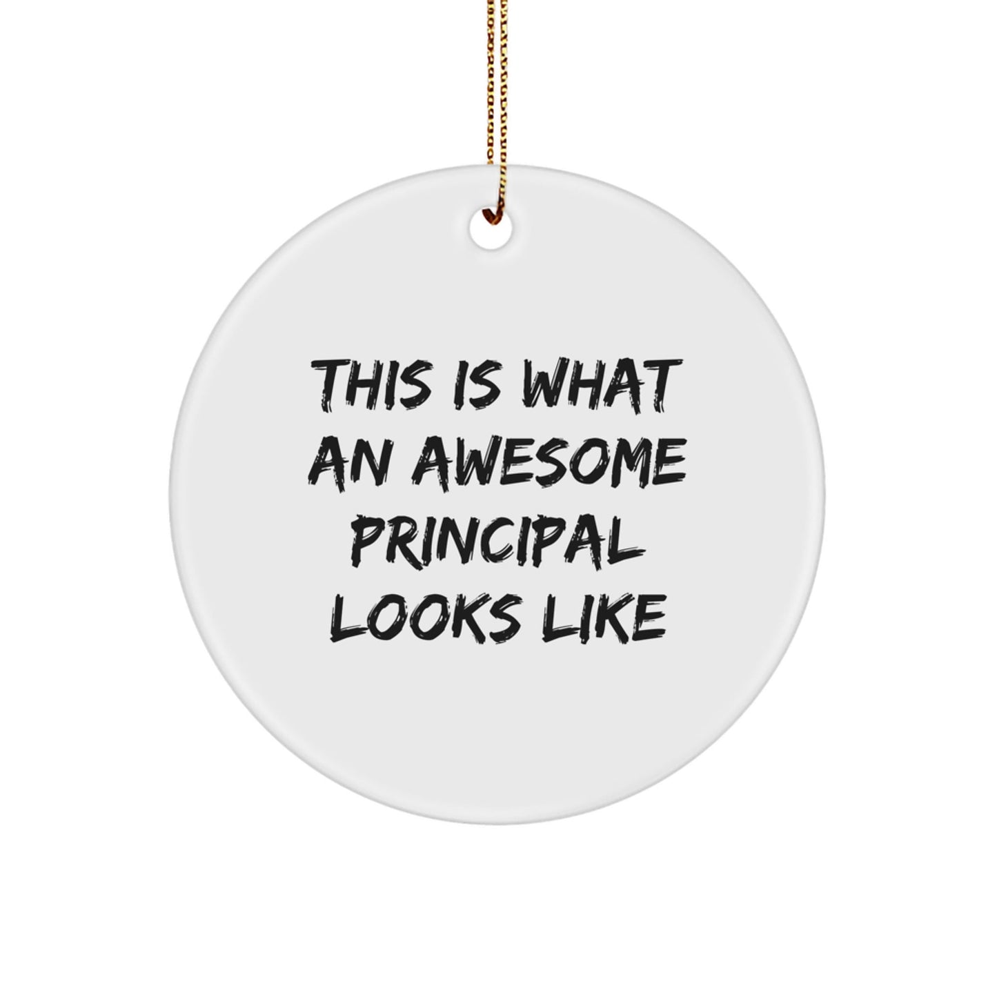 - Make a thoughtful and funny gift for your principal with this unique Circle Ornament, featuring the quote 'This Is What An Awesome Principal Looks Like'