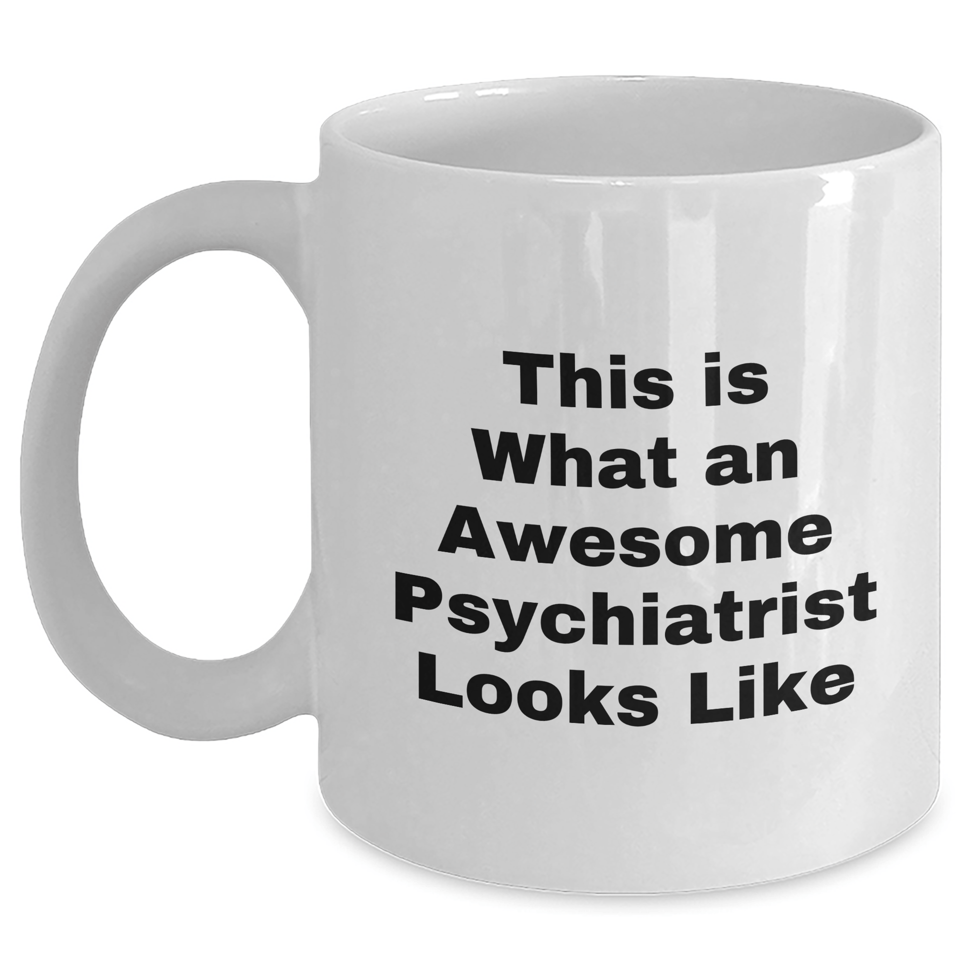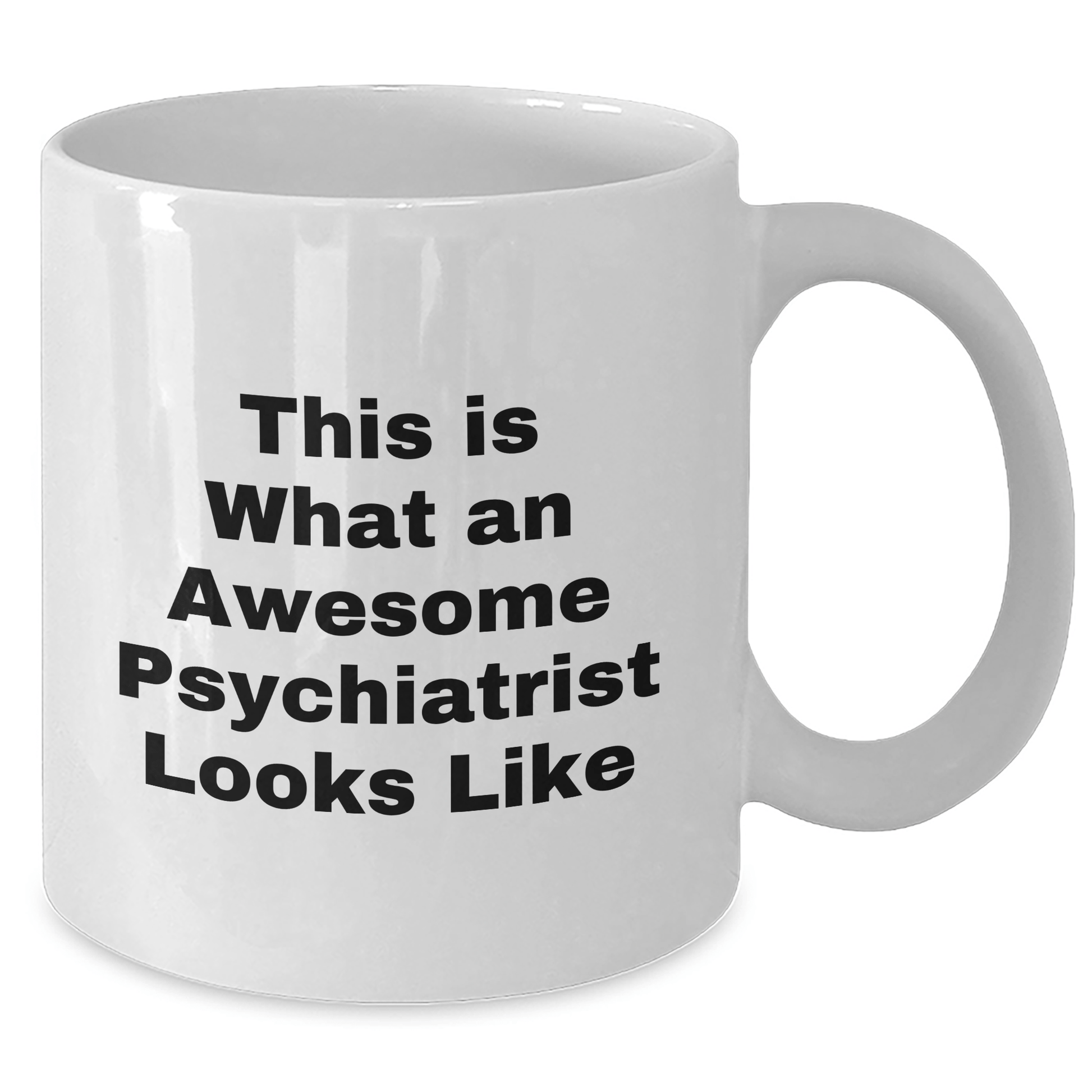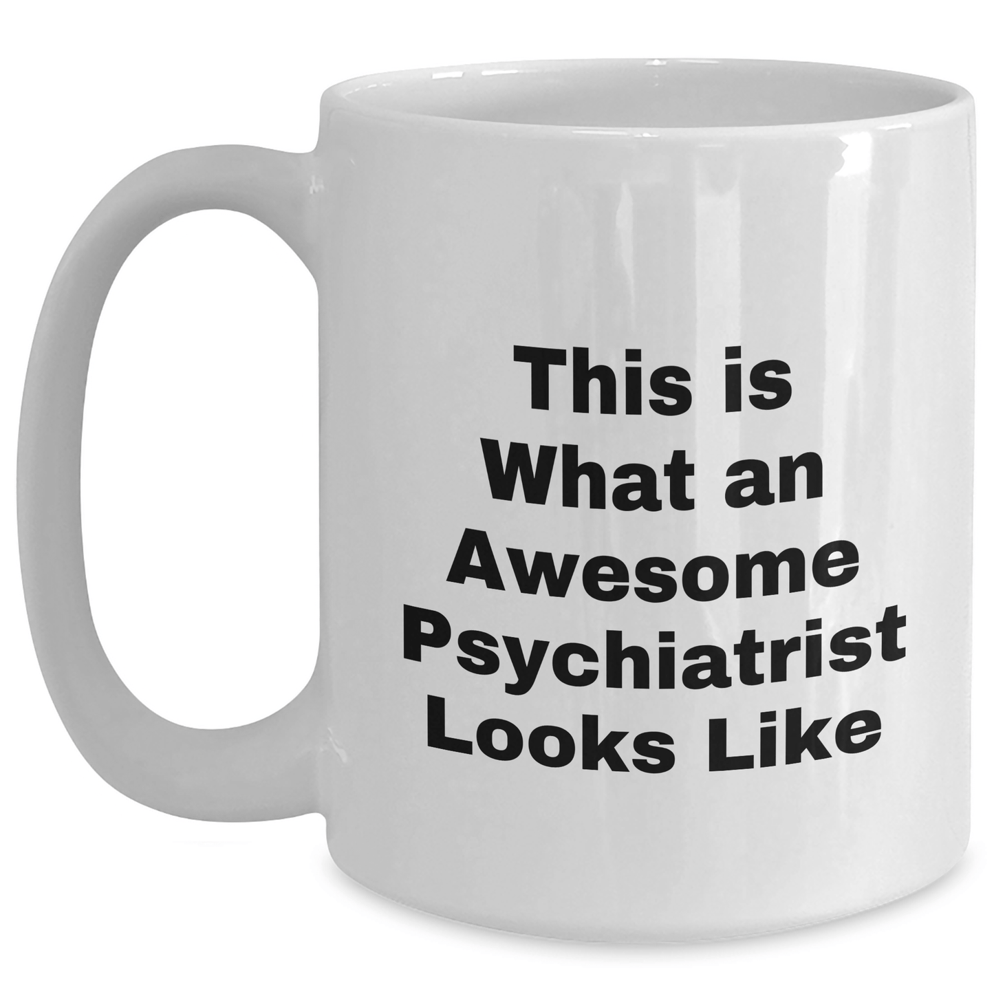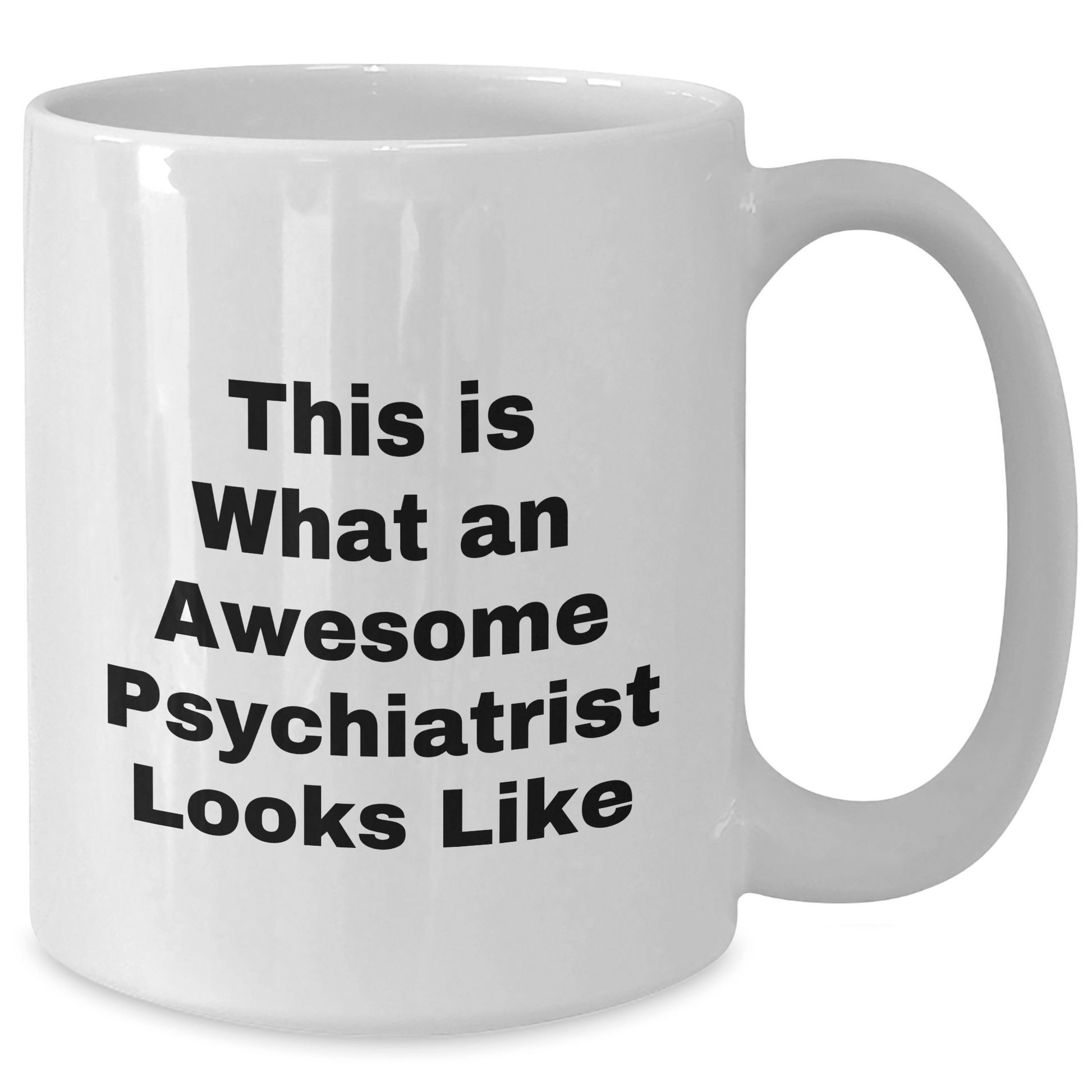 - This funny white coffee mug is the perfect way to show your appreciation for the Psychiatrist in your life. The quote 'This Is What An Awesome Psychiatrist Looks Like' is a great way to acknowledge their dedication and expertise. The mug is made from ceramic and is available in 11oz or 15oz capacity, making it perfect for coffee, tea, or any other hot beverage. It's also microwave and dishwasher safe, making it easy to clean and maintain.