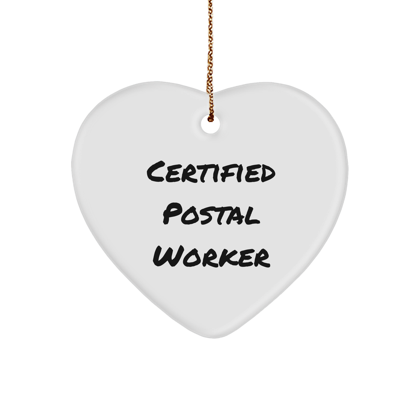 - 'Certified Postal Worker' quote adds a personal touch to this heart-shaped ornament, making it a unique and thoughtful gift