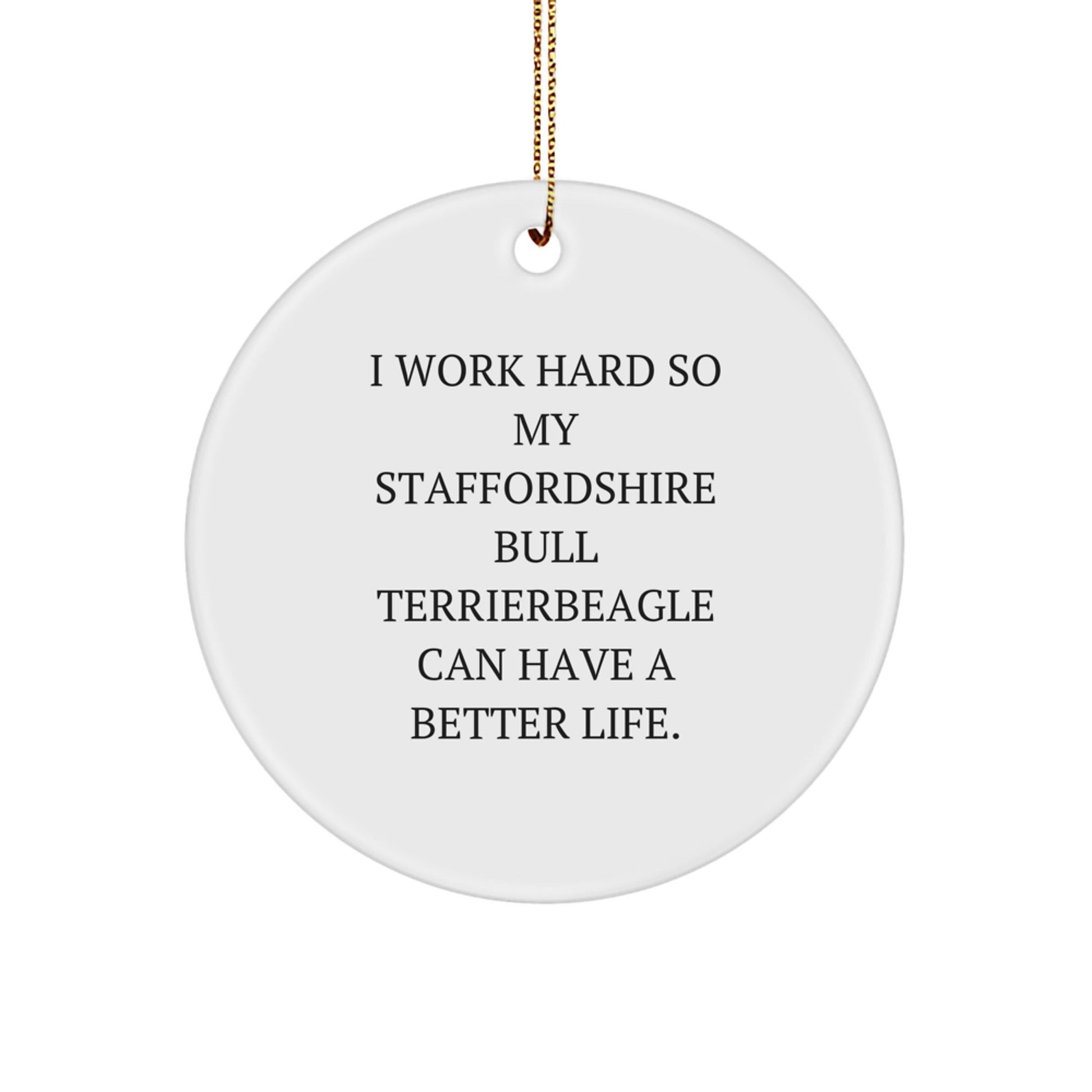 - Unique and thoughtful gift for Staffordshire Bull Terrier Dog lovers, perfect for Christmas or any special occasion. The quote 'I Work Hard So My Staffordshire Bull Terrier Can Have A Better Life' is inspiring and funny, making it a great addition to your home decor.
