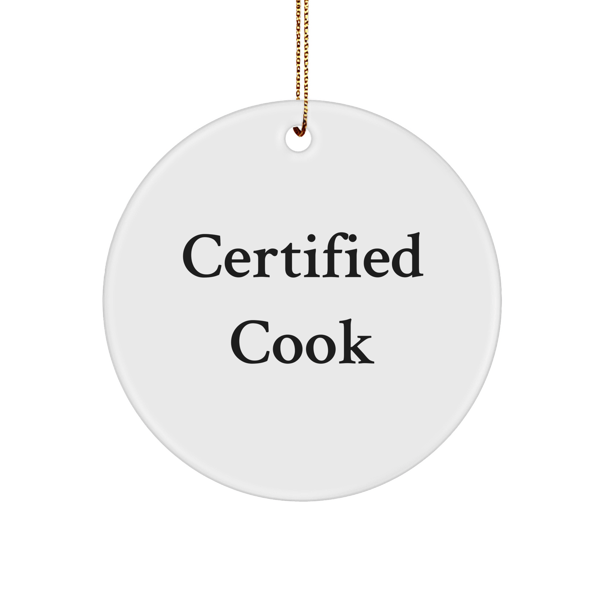 - Add a touch of humor to any kitchen with this funny quote circle ornament, featuring a certified cook's wit and wisdom. Perfect for gifts for men, women, or friends who love to cook.