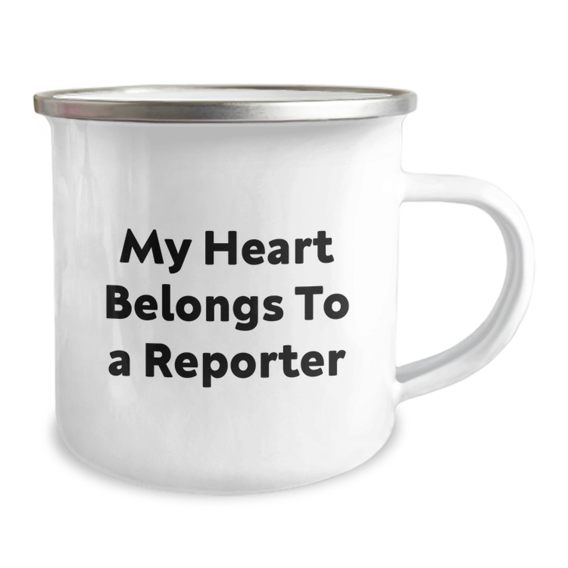 - Gift this 'My Heart Belongs To A Reporter' camping mug to your favorite reporter and make their birthday or any occasion a memorable one. Share the joy and appreciation with friends and family today!