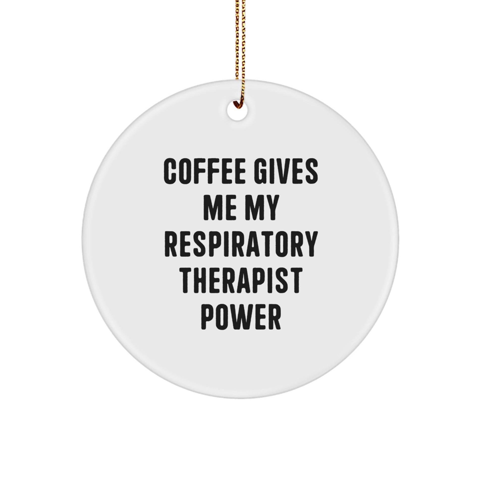 - Show your appreciation for the Respiratory Therapist in your life with our unique and inspirational Circle Ornament, featuring the quote 'Coffee Gives Me My Respiratory Therapist Power' on a white background.