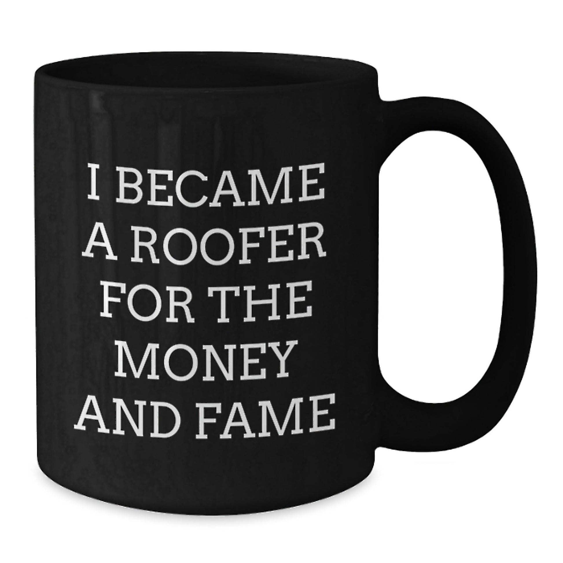 • Make a statement with this funny and inspirational quote 'I Became A Roofer For The Money And Fame' on a black coffee mug, perfect for roofer enthusiasts and those who appreciate their hard work and dedication.