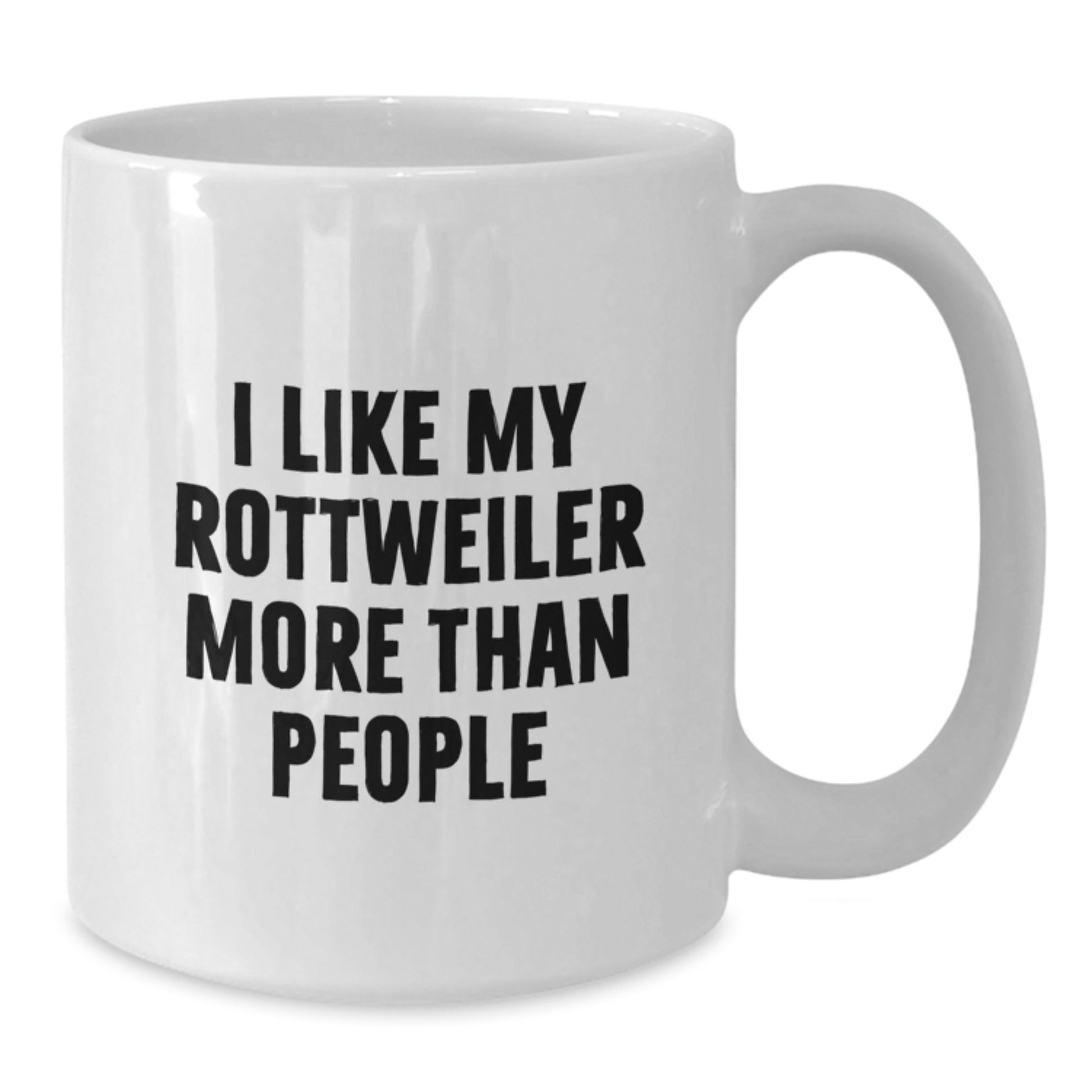 Rottweiler Dog enthusiasts, rejoice! This unique White Coffee Mug is the ideal gift for birthdays and special occasions. Made from ceramic, it's safe for microwave and dishwasher use. The quote 'I Like My Rottweiler More Than People' is a funny and relatable saying that any Rottweiler Dog lover will appreciate. Whether you're a family member, friend, or coworker, this gift is sure to bring a smile to their face. As you celebrate another year of life, shower them with love and appreciation with this thoughtful and humorous gift.