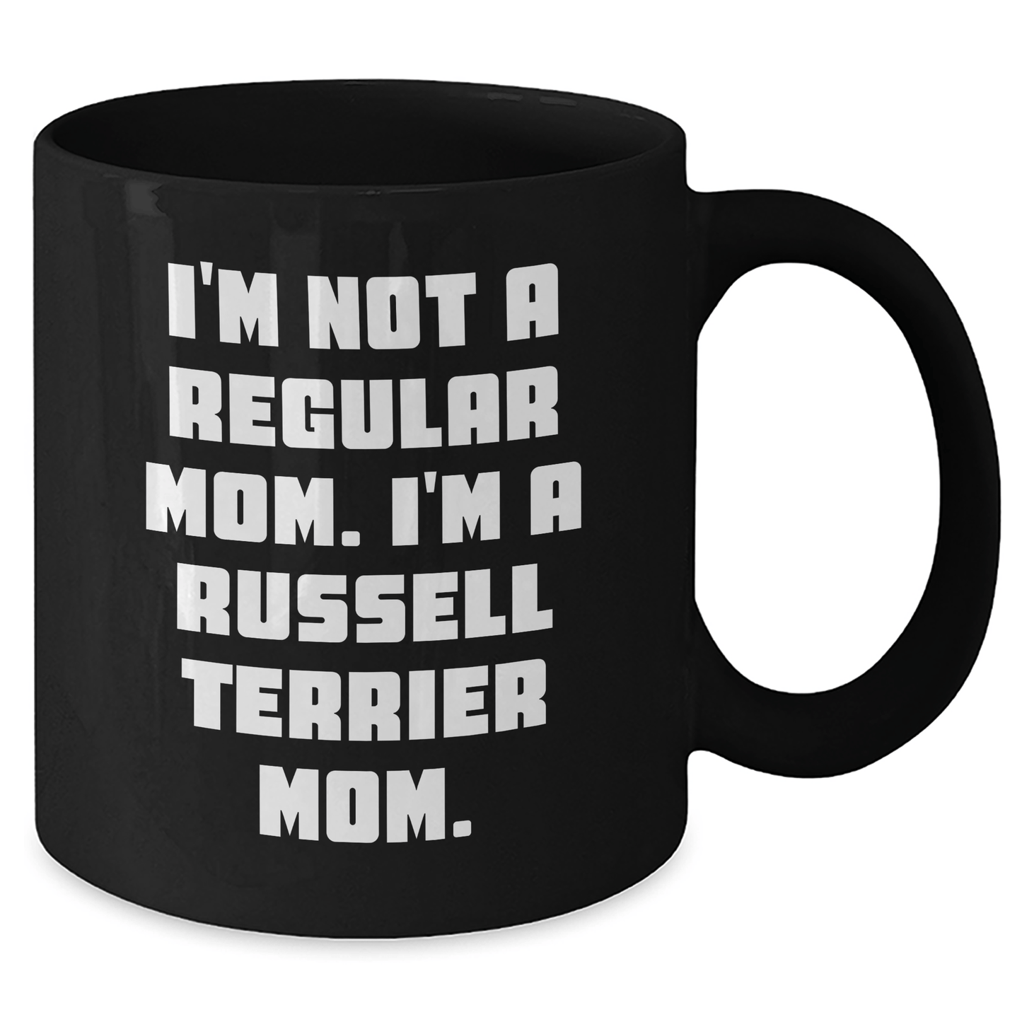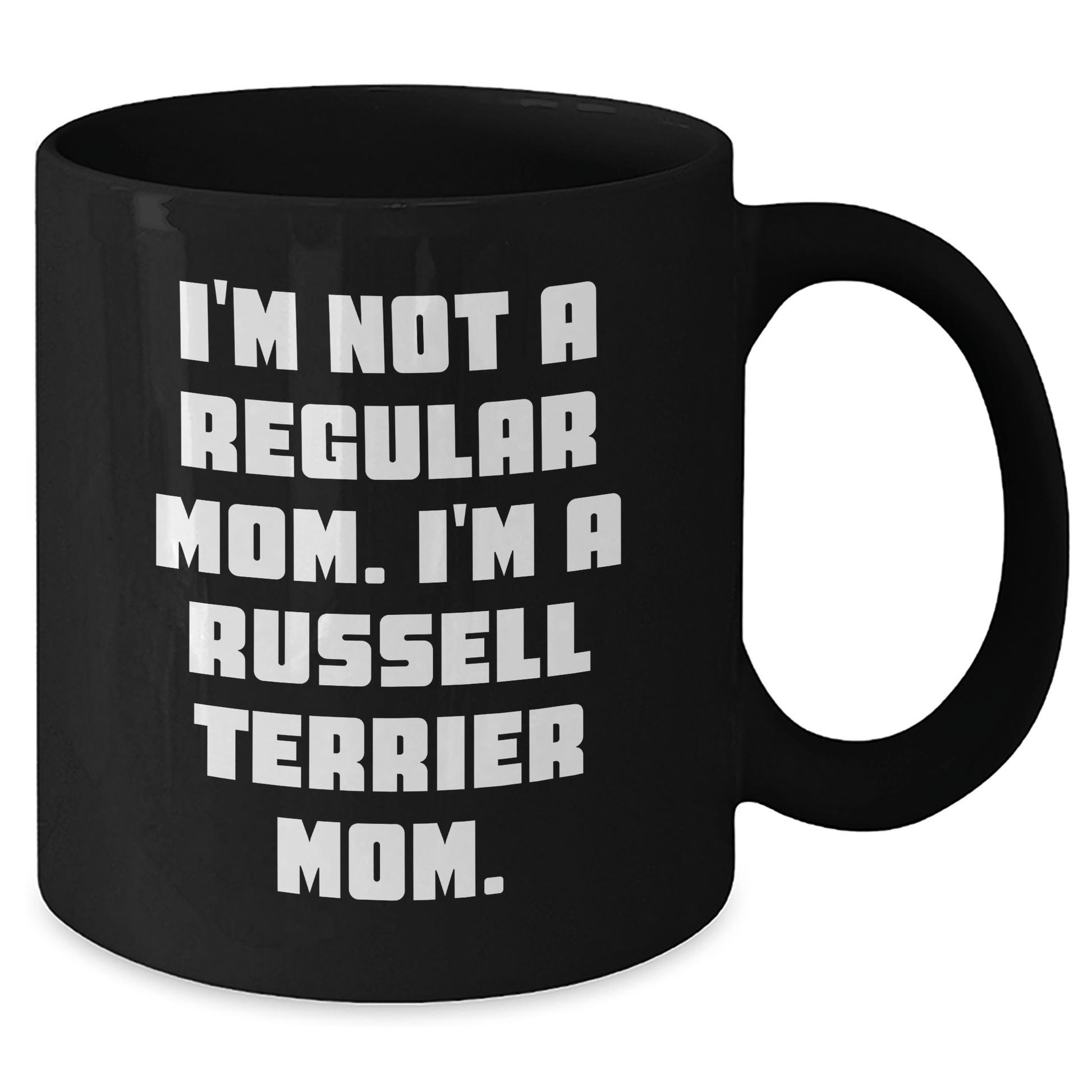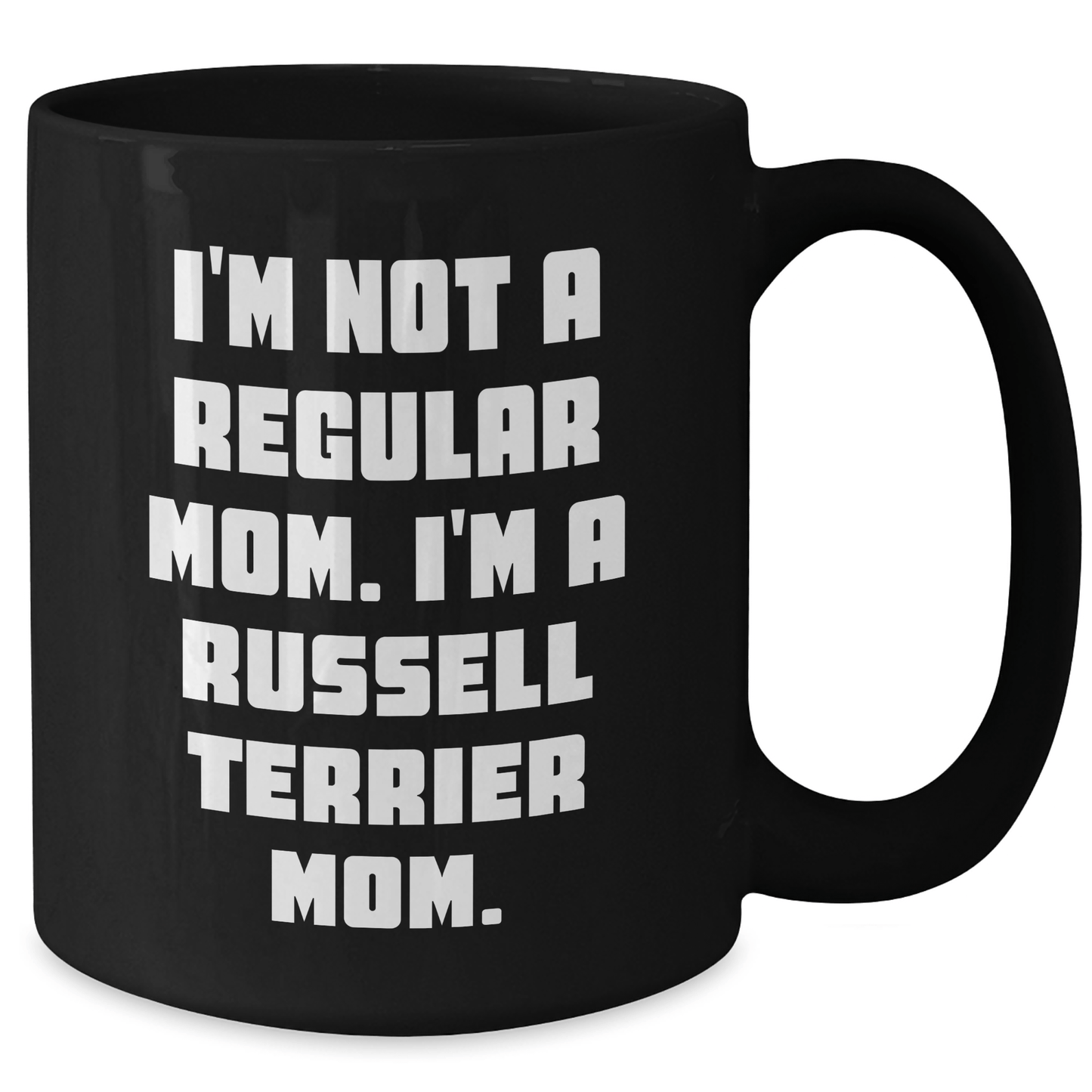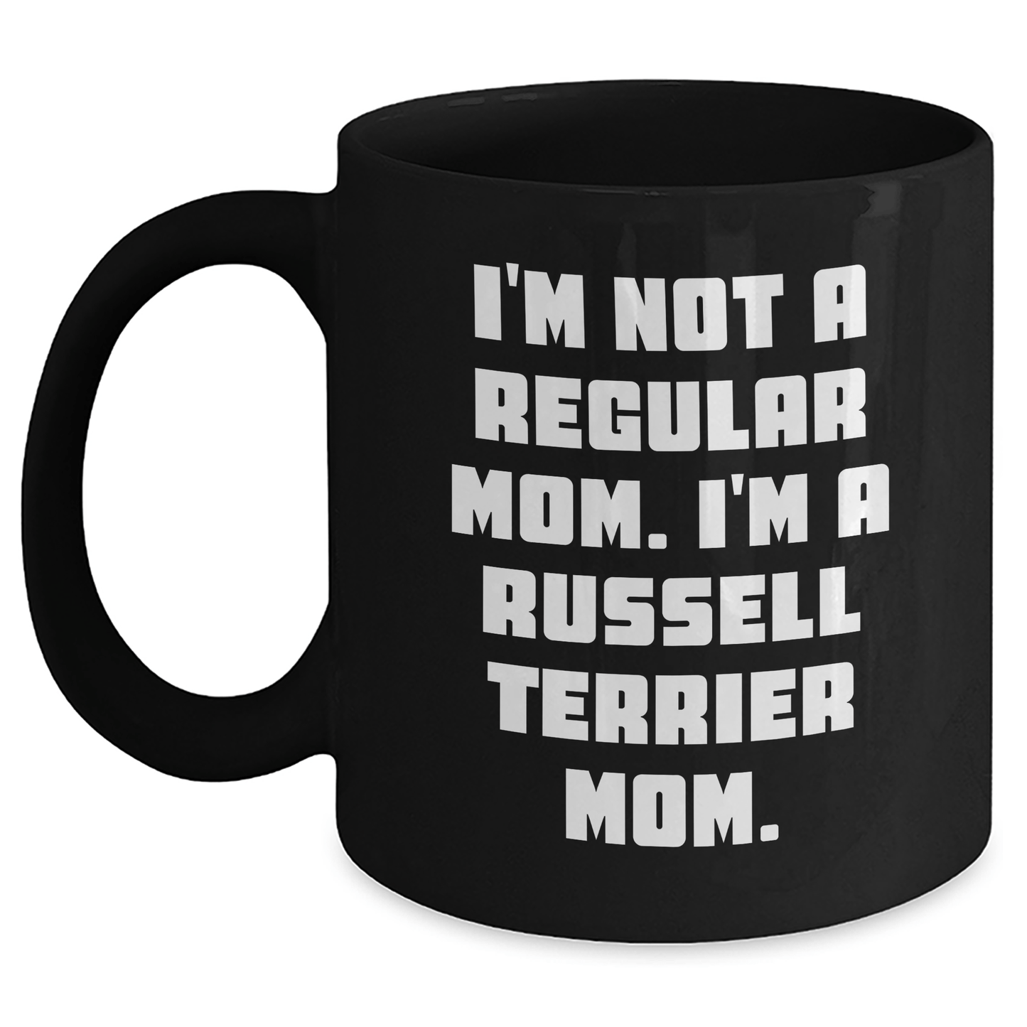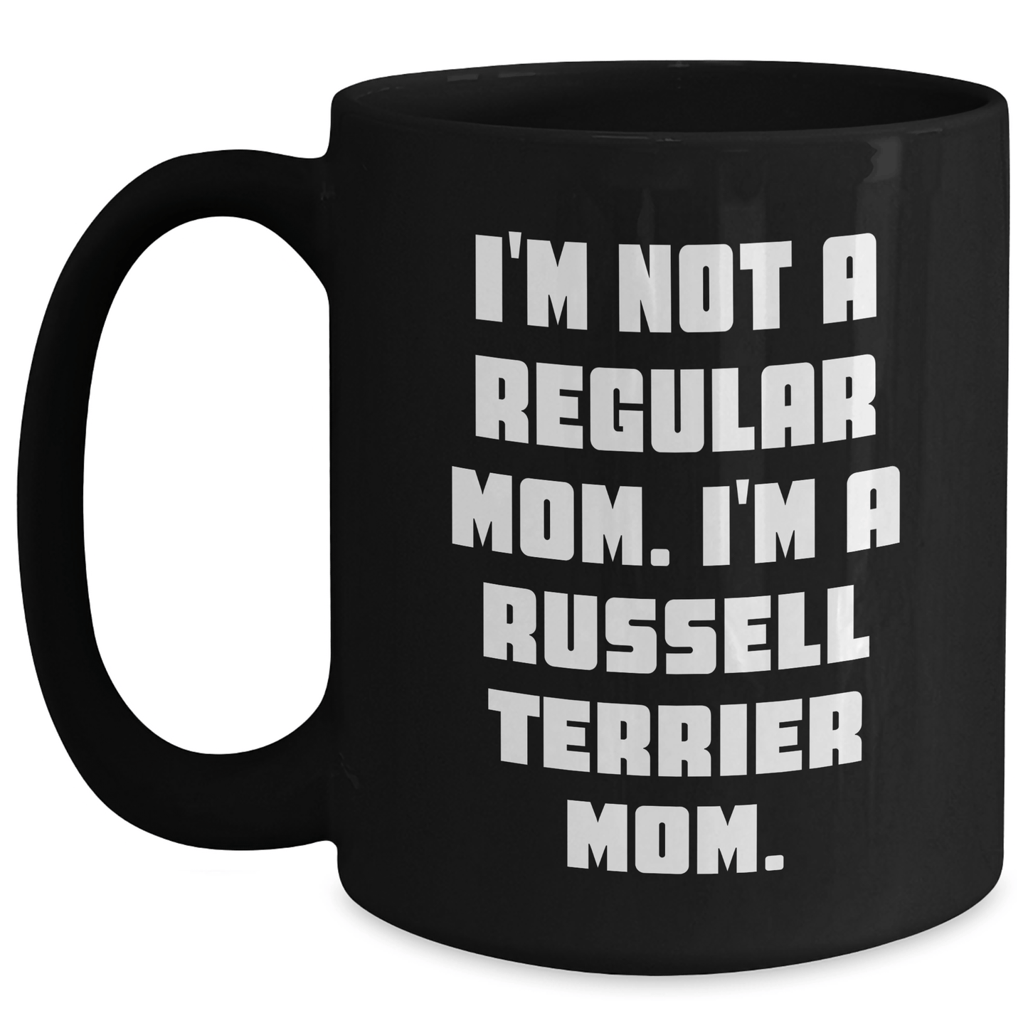 - Showcase your love for Russell Terrier Dogs with this unique black coffee mug, perfect for Russell Terrier Moms like you who appreciate the quirks and charm of these energetic and affectionate breeds. The quote 'I'm Not A Regular Mom. I'm A Russell Terrier Mom.' will resonate with any Russell Terrier enthusiast. The mug's ceramic material ensures durability and ease of use, making it an ideal gift for new graduates or any Russell Terrier Mom in your life.