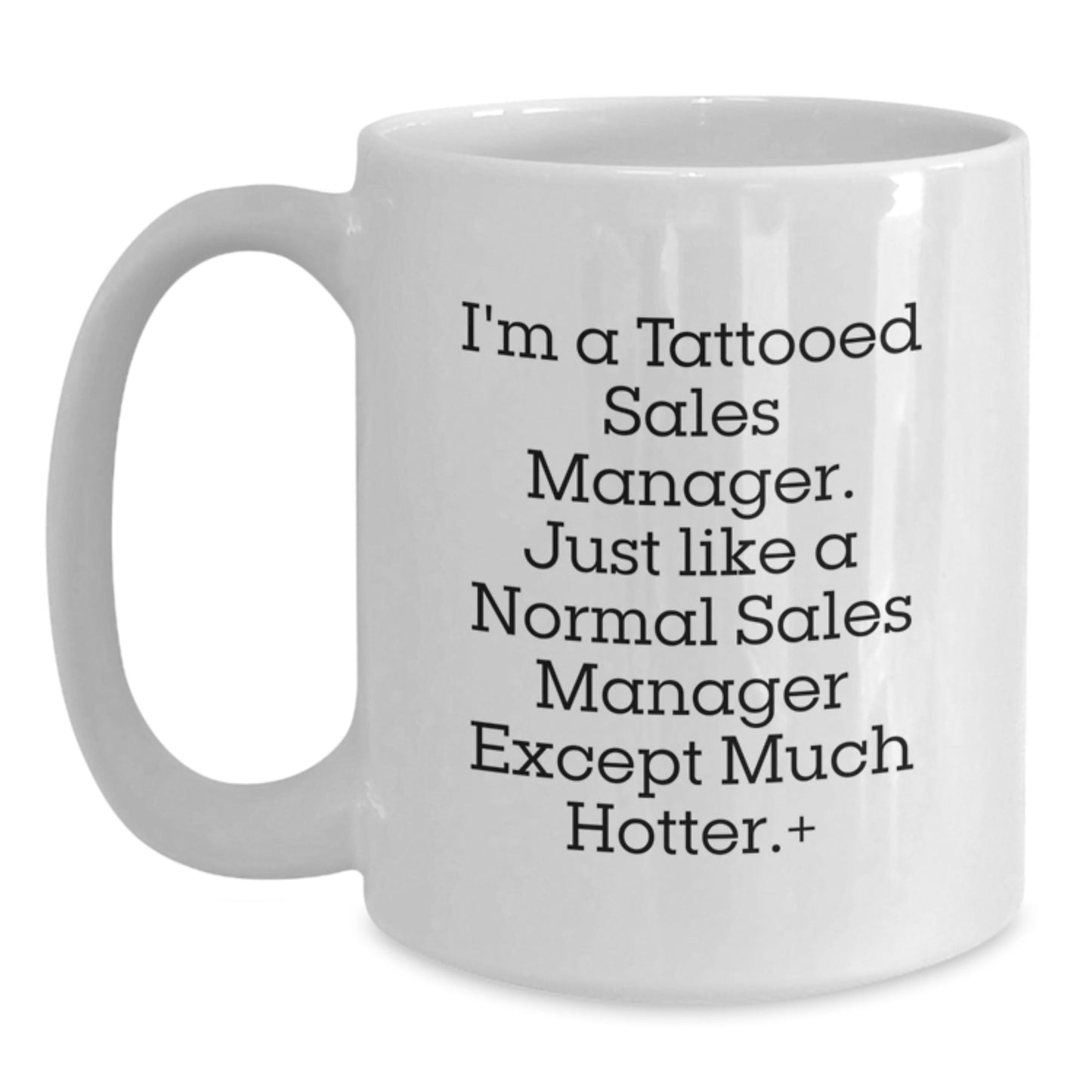 This gift is perfect for any occasion, especially Graduation, when you want to recognize a Sales Manager's achievements and express your appreciation for their hard work. Whether you're the gift sender or the recipient, this mug is sure to bring a smile to your face and a sense of pride to your chest. The quote 'I'm A Tattooed Sales Manager. Just Like A Normal Sales Manager Except Much Hotter.+' is a fun and lighthearted way to acknowledge the Sales Manager's unique personality and approach to their work.
