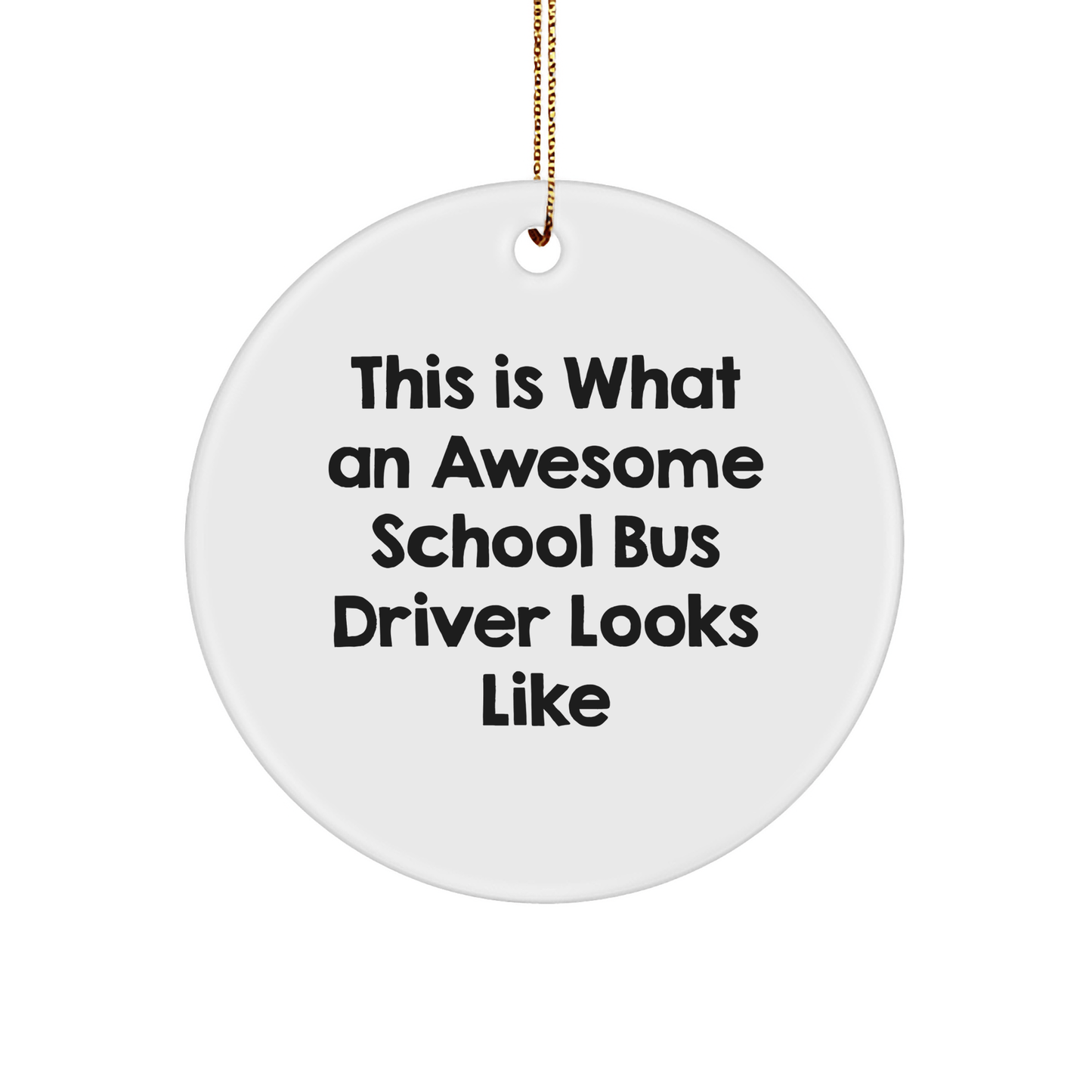 Featuring the inspiring quote 'This Is What An Awesome School Bus Driver Looks Like', this ornament is a thoughtful gift for any School Bus Driver. Crafted from sturdy MDF with a high-gloss plastic finish, it's lightweight and resistant to breaking, making it a great choice for households with children or pets.