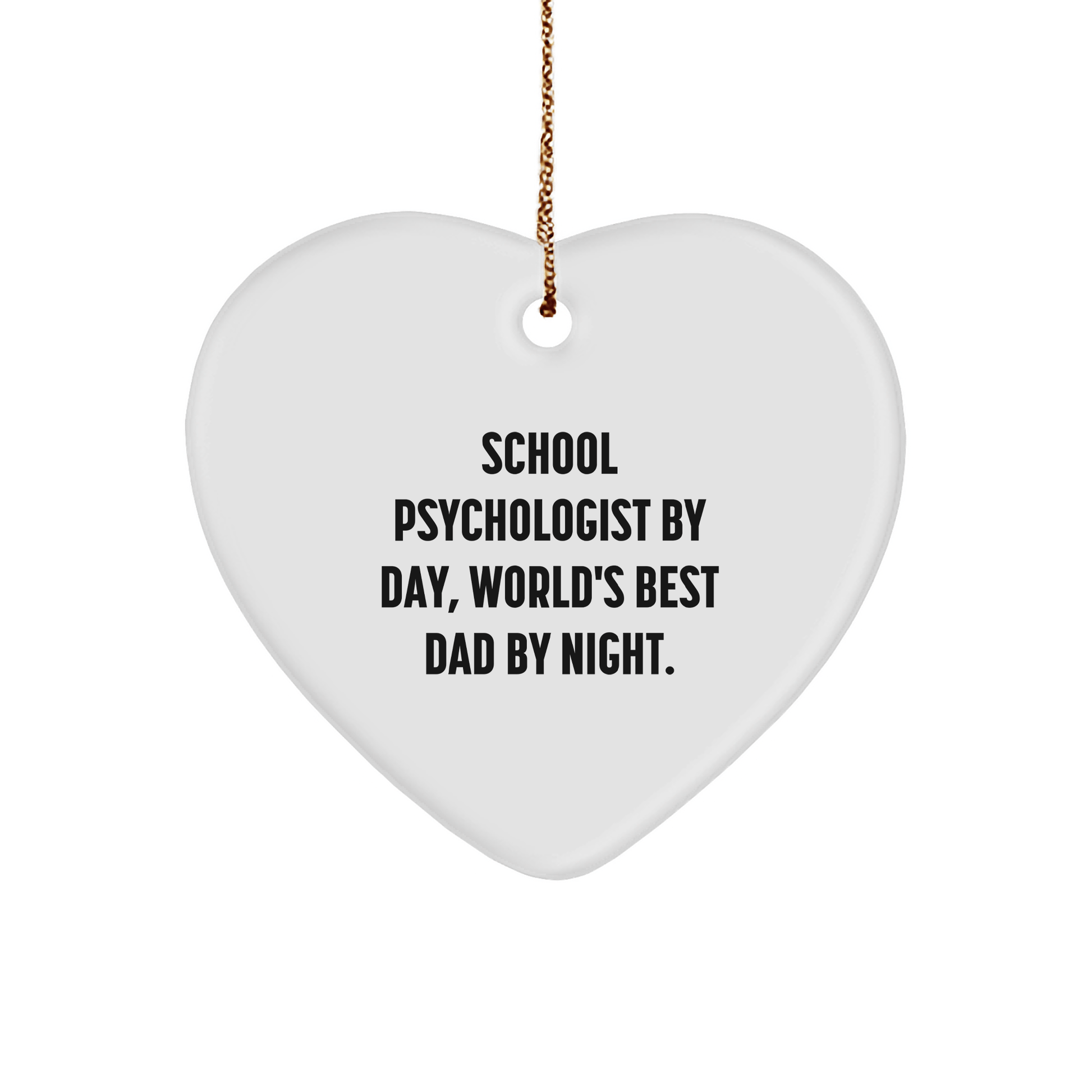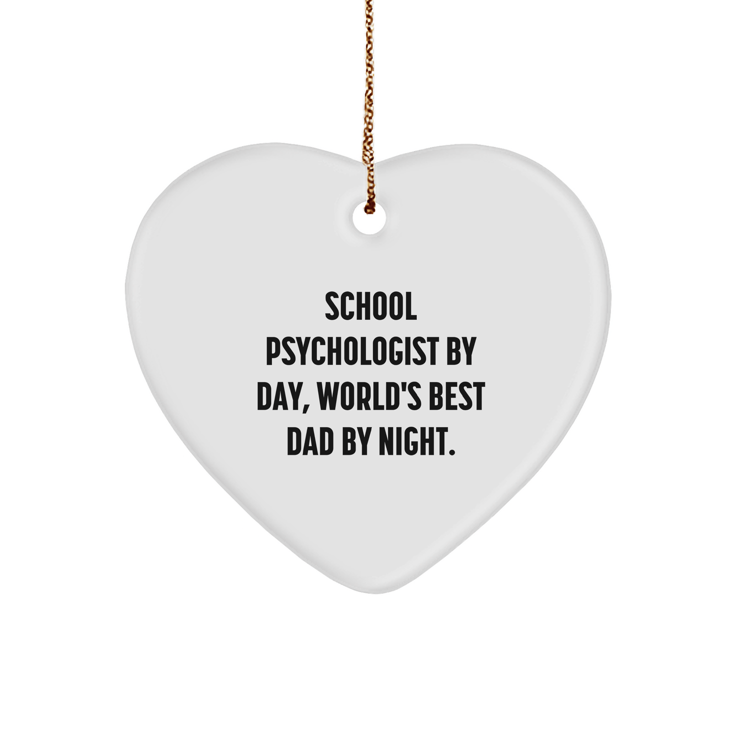 This heartwarming School Psychologist Heart Ornament is a thoughtful gift from family or friends. As a school psychologist by day and world's best dad by night, this quote will bring a smile to your loved one's face. Made from sturdy MDF with a high-gloss plastic finish, it's lightweight and resistant to breaking, perfect for households with children or pets. The vibrant printing process ensures bright, vivid colors that will last for years to come. Hang it with the included festive gold cord and enjoy a stress-free decorating experience. This unique Christmas gift is a great way to show your appreciation for the special school psychologist in your life.