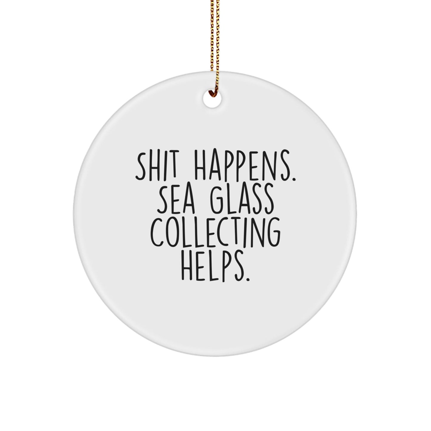 - This Circle Ornament is a thoughtful gift for any Sea Glass Collecting enthusiast, featuring the hilarious quote 'Shit Happens. Sea Glass Collecting Helps.' in a bright, white finish.